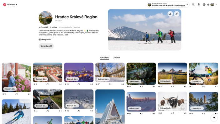 Na novém profilu pinterest.com/hkregion uživatelé najdou pečlivě vybrané fotografie, tipy na výlety a informace o sezónních akcích v regionu. Ať už je láká divoká příroda, historické památky nebo městská atmosféra, zde najdou inspiraci pro svou další cestu. Obsah bude pravidelně aktualizován podle ročního období a aktuálního dění v regionu.