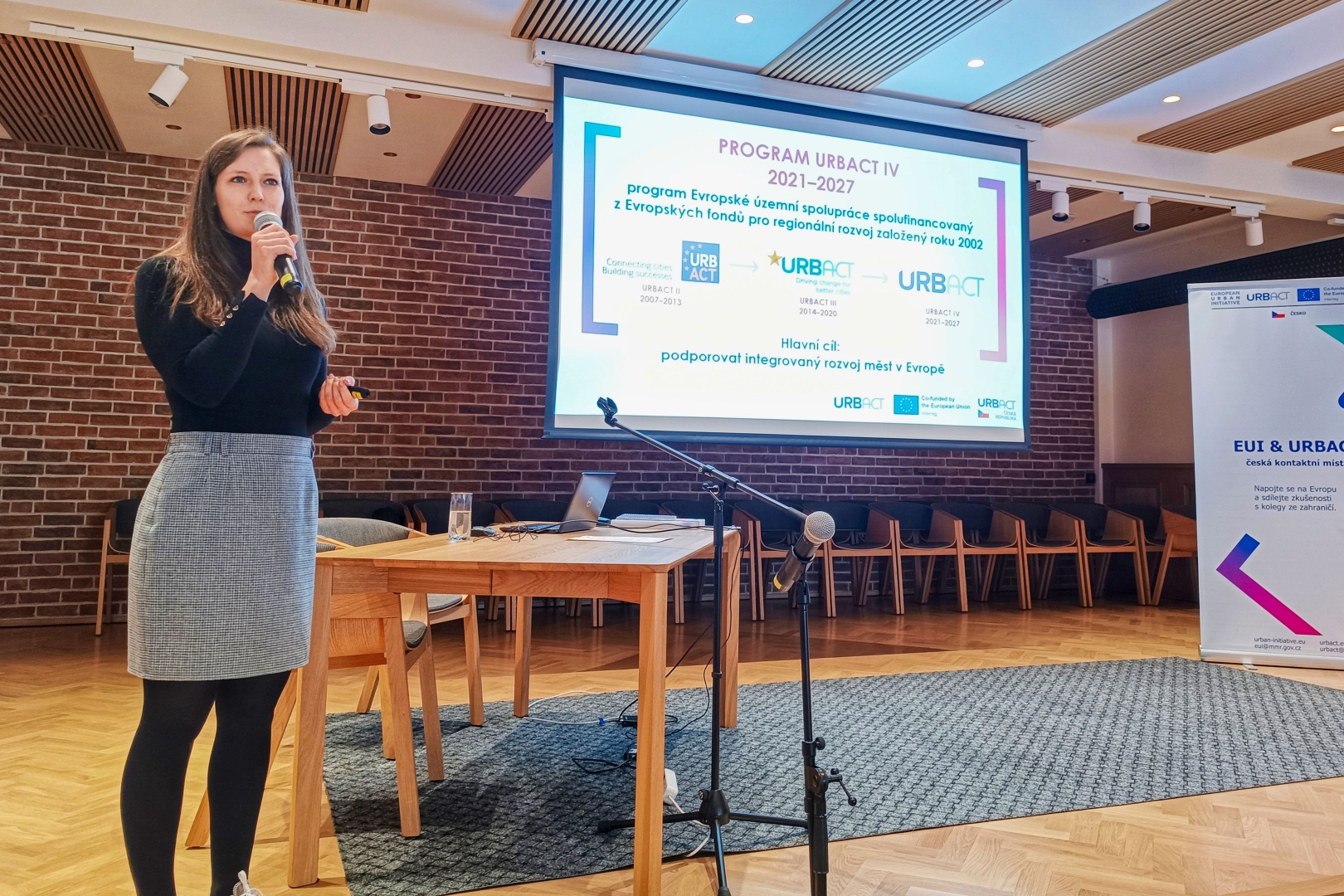 Markéta Horská a Vít Bořil následně prezentovali Program Urbact IV a Evropskou městskou iniciativu, která je zaměřená na podporu inovativních opatření a posilování integrovaných a participativních přístupů k udržitelnému městskému rozvoji.