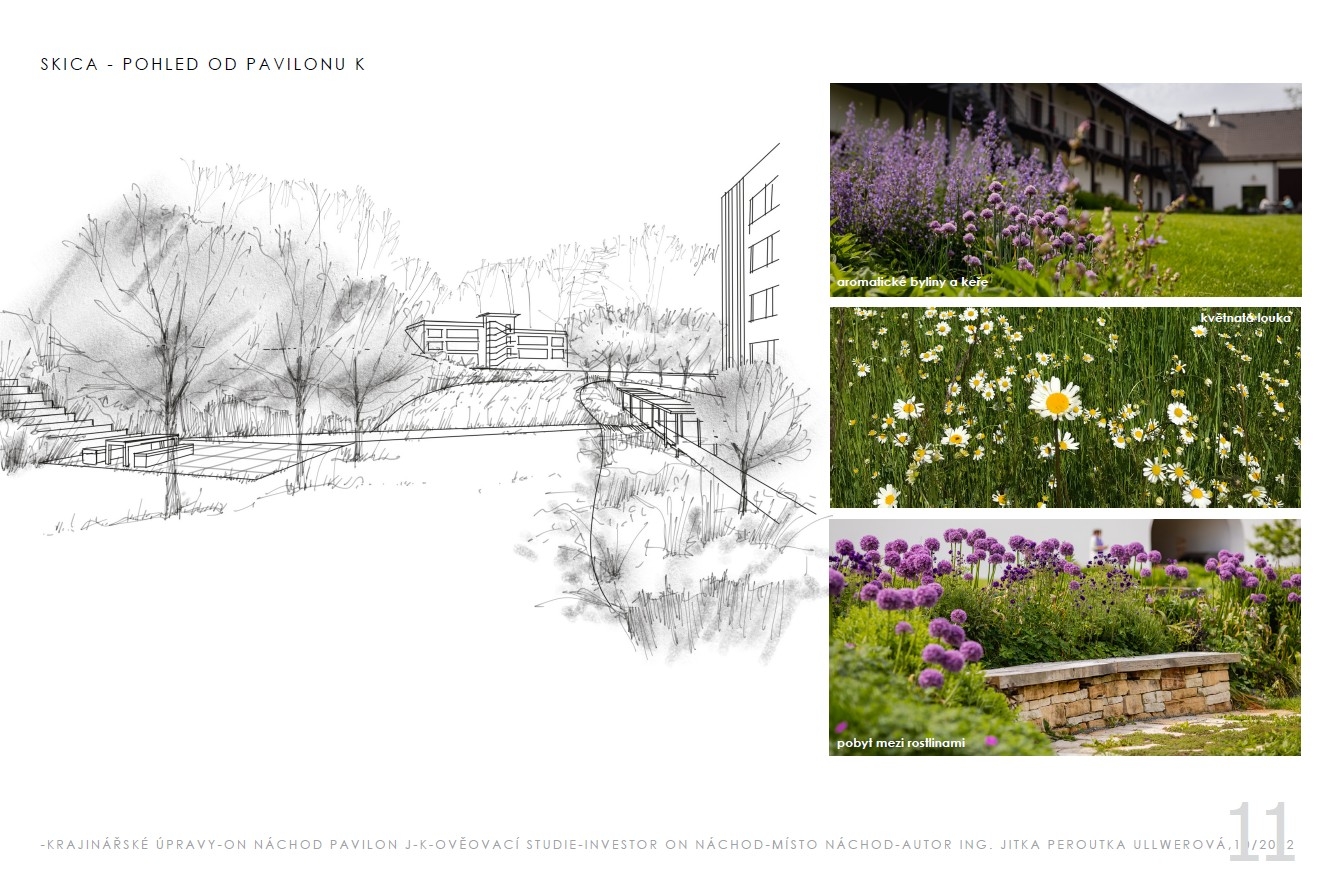 Ještě do konce letošního roku by mohla být dokončena léčebná zahrada. Stavební práce a krajinářské úpravy budou stát celkem 14,3 milionu korun. Projekt, který vzniká v dolním areálu mezi nedávno dokončenými pavilony J a K, získal podporu z evropského IROP2.