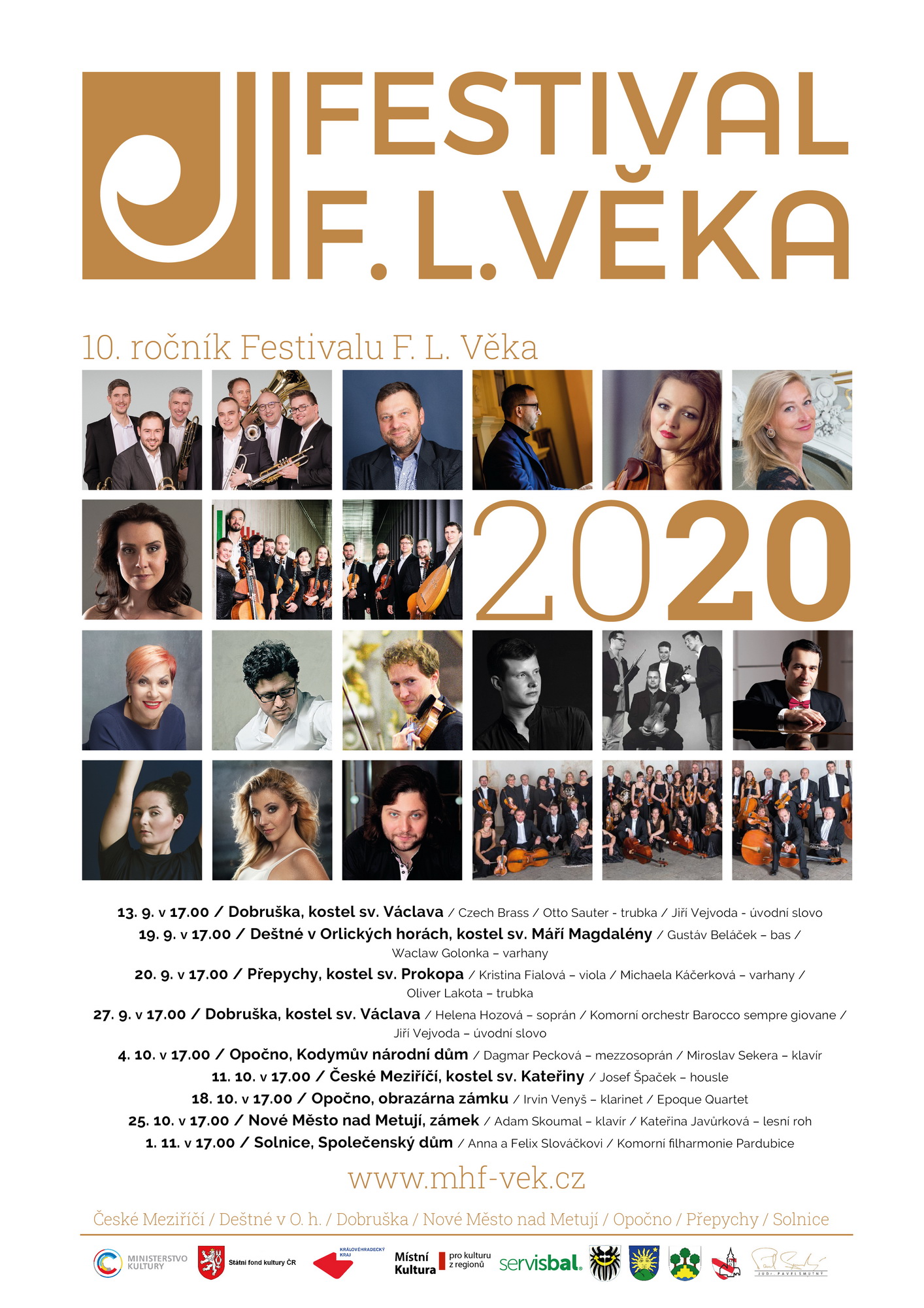 Festival F. L. Věka oslaví v tomto roce první kulaté jubileum – desátý ročník se uskuteční od 13. září do 1. listopadu a nabídne devět koncertů, jeden nový koncertní prostor a mezi špičkovými soubory a sólisty s velkým renomé doma i ve světě, například mezinárodně velice ceněného houslistu a koncertního mistra České filharmonie Josefa Špačka.