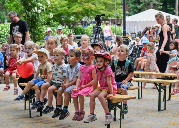 Jiráskovy sady v Hradci Králové hostily během pátku celodenní program pro celou rodinu. Dopoledne bylo zaměřené spíše na dětské návštěvníky, na podiu tak vystoupil například kouzelník, sokolník, policejní psovod či loutkoherci s Pohádkou Kozlík.