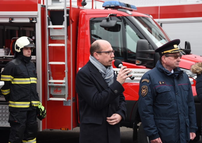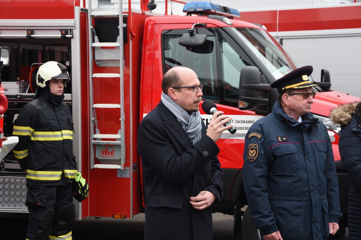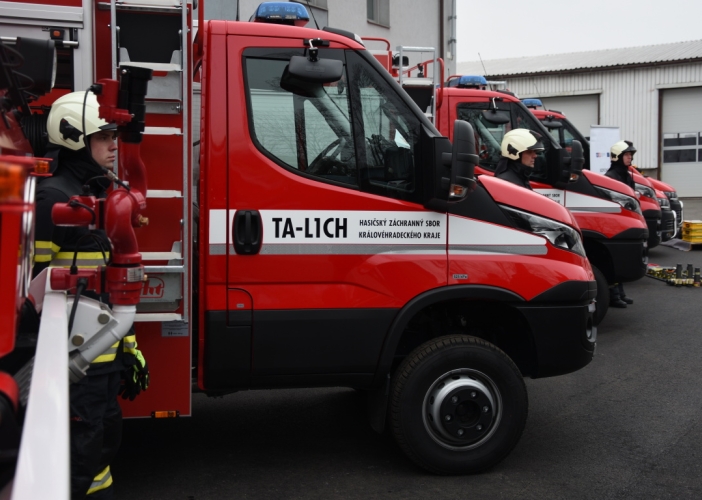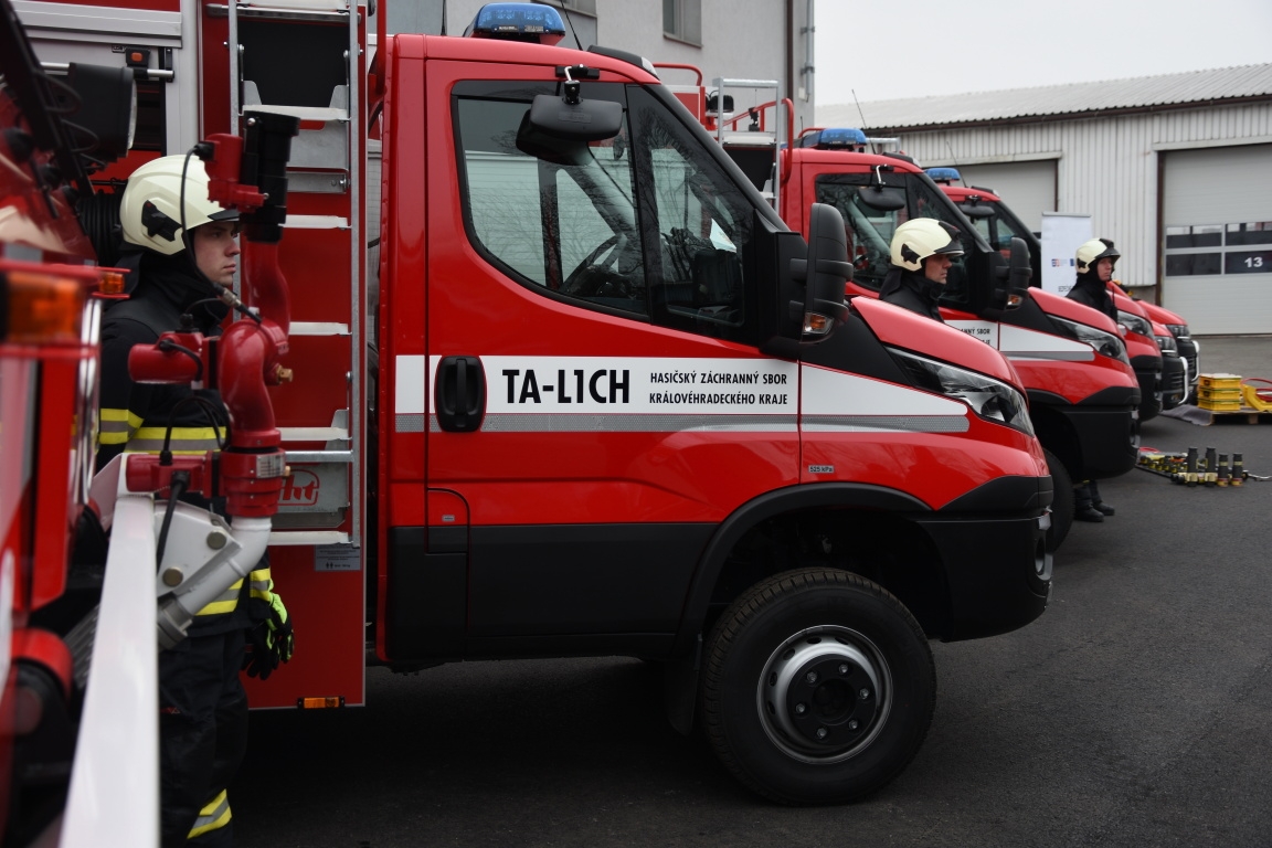 Novou zásahovou techniku a speciální prostředky převzali hasiči na centrální stanici v Hradci Králové, vozy s vybavením ale budou sloužit po celém kraji.