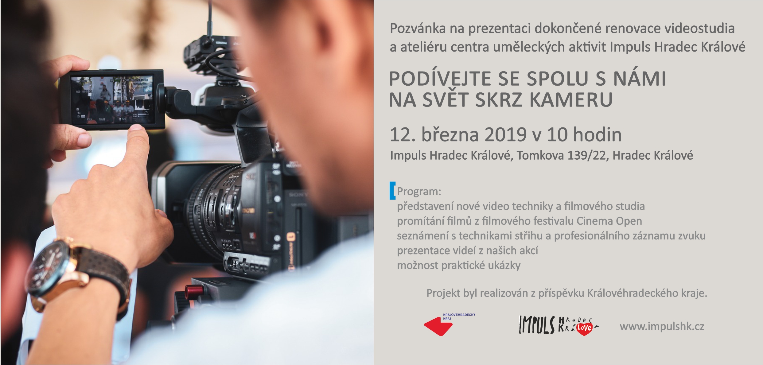„Nově pořízené vybavení bude sloužit nejen k produkci pořadů pro Královéhradecký kraj, jeho příspěvkové organizace, pro potřeby spolupracujících projektů nebo pro účely našeho centra, ale také pro výukové kurzy a pro rozvoj umělecké tvorby především neprofesionálních filmařů a fotografů a nekomerčních projektů. Do prostoru ateliéru letos ještě přibude světelné a gripové vybavení,“ vysvětluje Ondřej Krejcar, vedoucí oboru Film v centru podpory uměleckých aktivit.