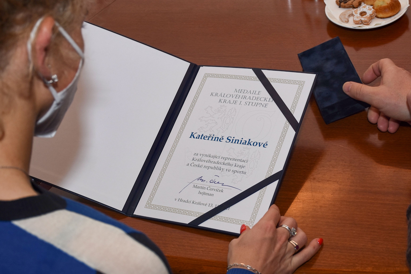 Úspěšná tenistka Kateřina Siniaková získala za mimořádné sportovní úspěchy a reprezentaci kraje a České republiky Medaili Královéhradeckého kraje I. stupně. Ocenění si měla rodačka z Hradce Králové převzít během slavnostního galavečeru společně s dalšími osobnostmi, jeho pořádání však kraj musel kvůli epidemické situaci odložit.