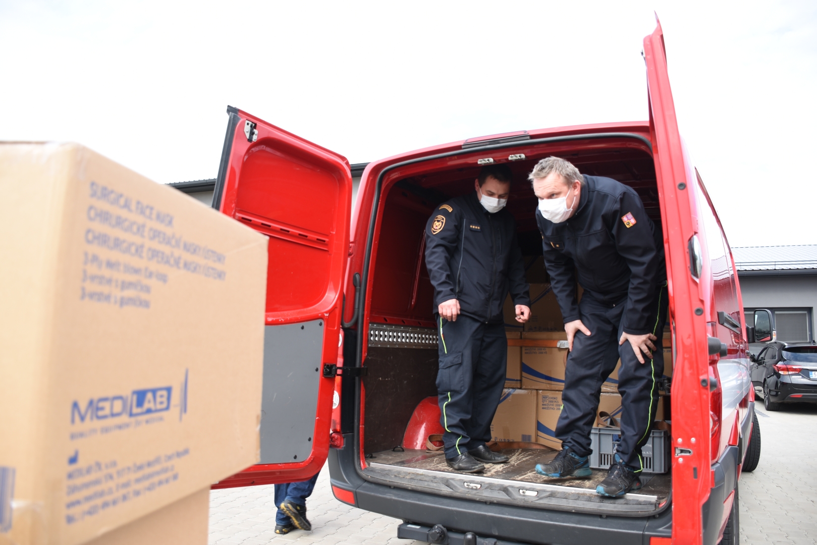 „Dnes jsme pro Královéhradecký kraj pořídili 87 tisíc kusů chirurgických roušek s filtrační hodnotou N98. Roušky rozdělíme mezi záchranáře, hasiče, policisty, praktické lékaře a zubaře a pro další, kteří jsou v čele boje se šířením koronaviru. Děkuji společnosti Medilab za dar šesti tisíc kusů roušek pro naše nemocnice a mateřské školy. Vážíme si takové pomoci i takové spolupráce,“ uvedl hejtman Jiří Štěpán, který do Českého Meziříčí přijel zásilku převzít společně se starostou Náchoda Janem Birke. Na toho se společnost Medilab obrátila s nabídkou, o které starosta ihned informoval hejtmana. Samo město Náchod od firmy nakoupilo 13 tisíc roušek a tisíc dostalo darem pro mateřské školy.