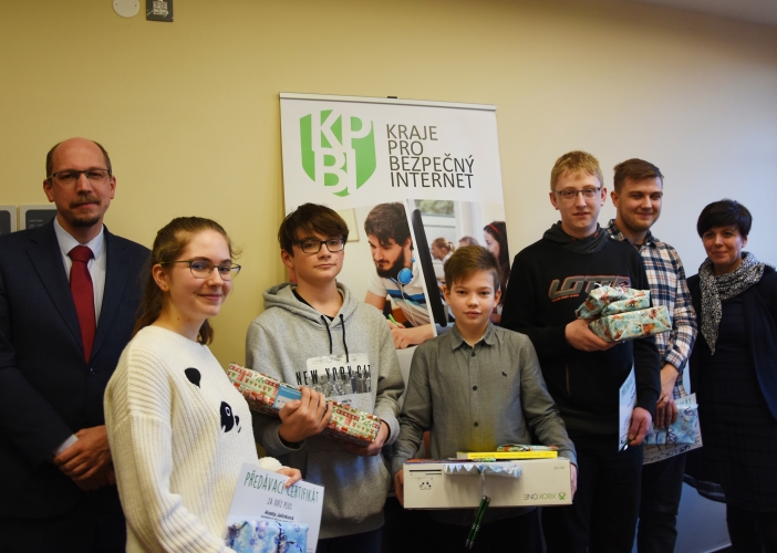 Letošního ročníku projektu Kraje pro bezpečný internet se účastnilo více jak 2 000 žáků a 35 škol z našeho kraje. Hejtman Jiří Štěpán a náměstkyně Martina Berdychová předali na slavnostním setkání vylosovaným vítězům hodnotné ceny a odměnili finančním darem školy, které se do projektu zapojily největším počtem svých žáků.
