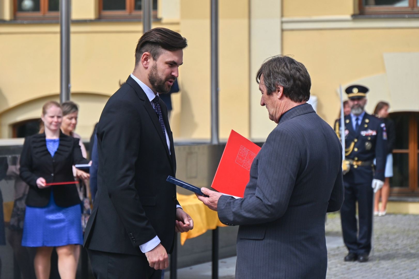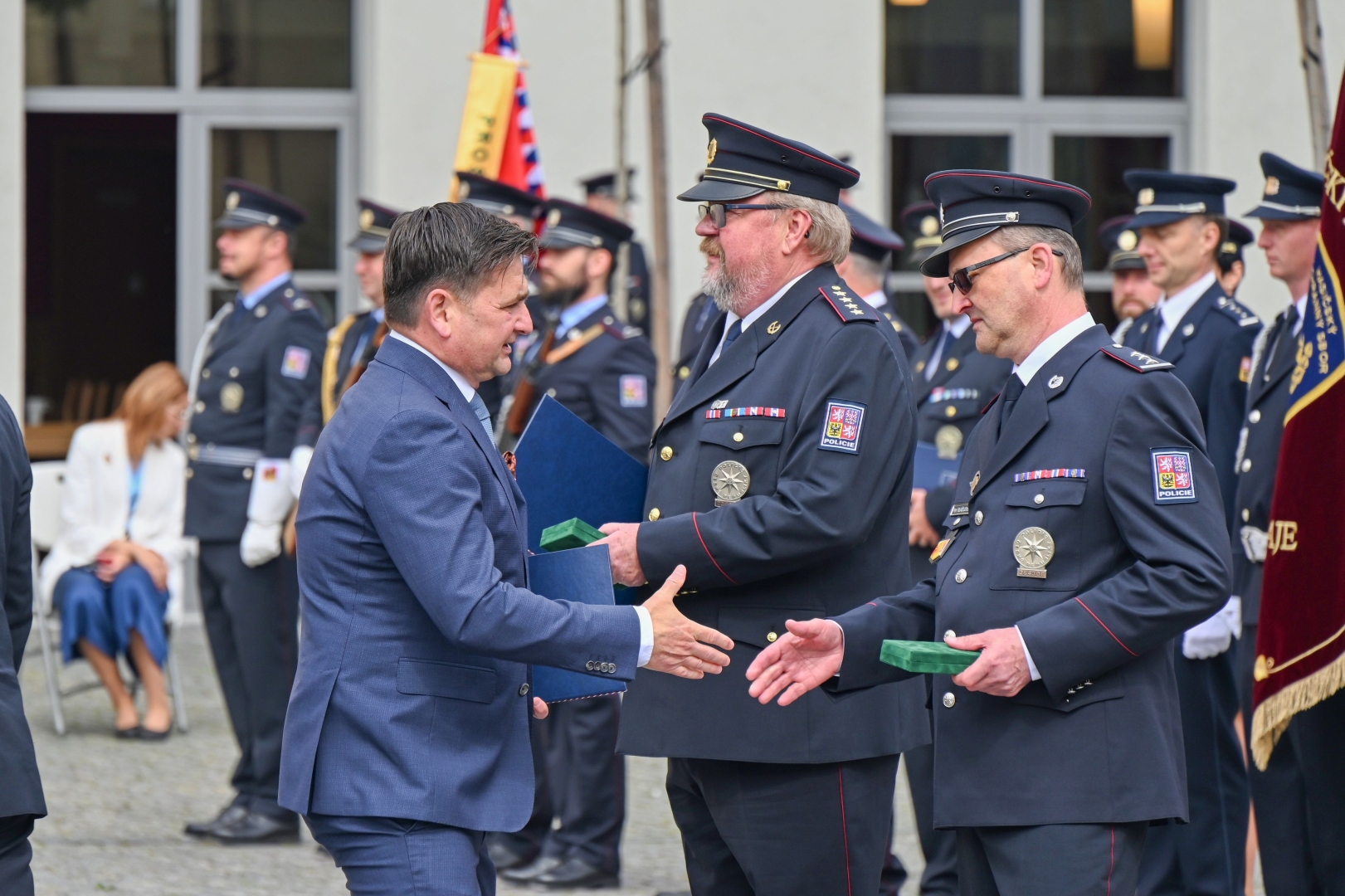 „Chtěl bych vám, příslušníkům bezpečnostních sborů, poděkovat za každodennost, kterou nám pomáháte, chráníte nás a jste vždy k dispozici v případech, kdy se stane něco mimořádného a my se spoléháme na to, že nás někdo zachrání a že nám pomůže naplnit pocit bezpečí, který je jednou z nejdůležitějších hodnot, co v životě máme. Královéhradecký kraj má skvěle fungující integrovaný záchranný systém – přes 1700 policistů, přes 600 profesionálních hasičů, více jak 600 záchranářů a mnoho dalších zástupců dalších složek. Všichni svou činností a schopností kooperovat, být připraveni a vnímat možná bezpečnostní rizika si zasloužíte poděkování a respekt. Obrovské poděkování ale patří také vašim rodinám a vašim blízkým, kteří za vámi stojí a umožňují vám takto náročná povolání vykonávat, a přeji proto vám všem, abyste se za všech okolností za nimi ve zdraví vrátili domů,“ řekl během slavnostního ceremoniálu před sídlem kraje hejtman Martin Červíček, který společně s prvním náměstkem Pavlem Bulíčkem a řediteli jednotlivých složek ocenění předal.