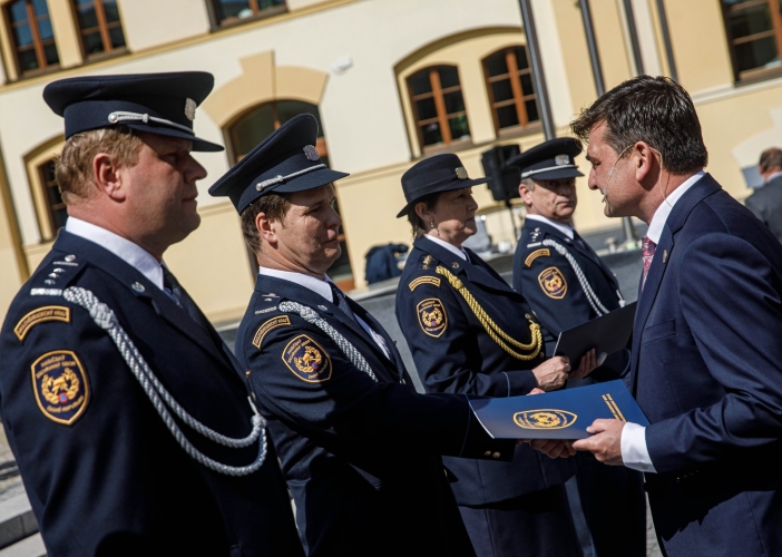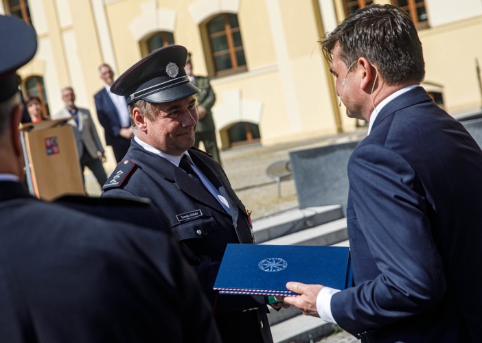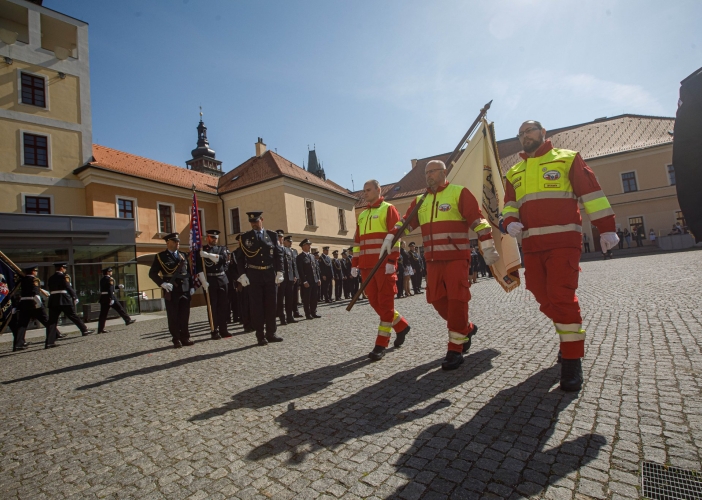Královéhradecký kraj v neděli 8. května symbolicky na Den vítězství ocenil příslušníky složek integrovaného záchranného systému. Slavnostní ceremoniál se uskutečnil tradičně před krajským sídlem na Pivovarském náměstí v Hradci Králové.