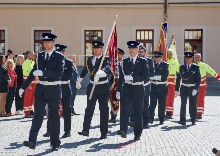 Pět desítek hasičů, policistů a záchranářů si přišlo převzít ocenění ať už za dlouholetou službu regionu a jeho obyvatelům nebo aktivní a obětavou činnost v rámci sboru. Slavnostní ceremoniál se uskutečnil tradičně před krajským sídlem na Pivovarském náměstí v Hradci Králové, a to symbolicky na Den vítězství.
