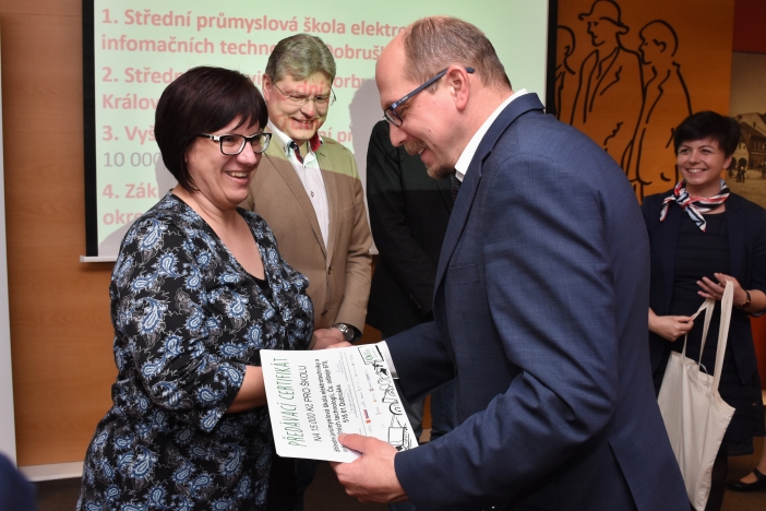 Letošního ročníku projektu Kraje pro bezpečný internet se zúčastnilo více jak 2 500 žáků a 64 škol z Královéhradeckého kraje. Hejtman Jiří Štěpán a náměstkyně Martina Berdychová předali na slavnostním setkání vylosovaným vítězům hodnotné ceny a odměnili finančním darem školy, které se do projektu zapojily největším počtem svých žáků.