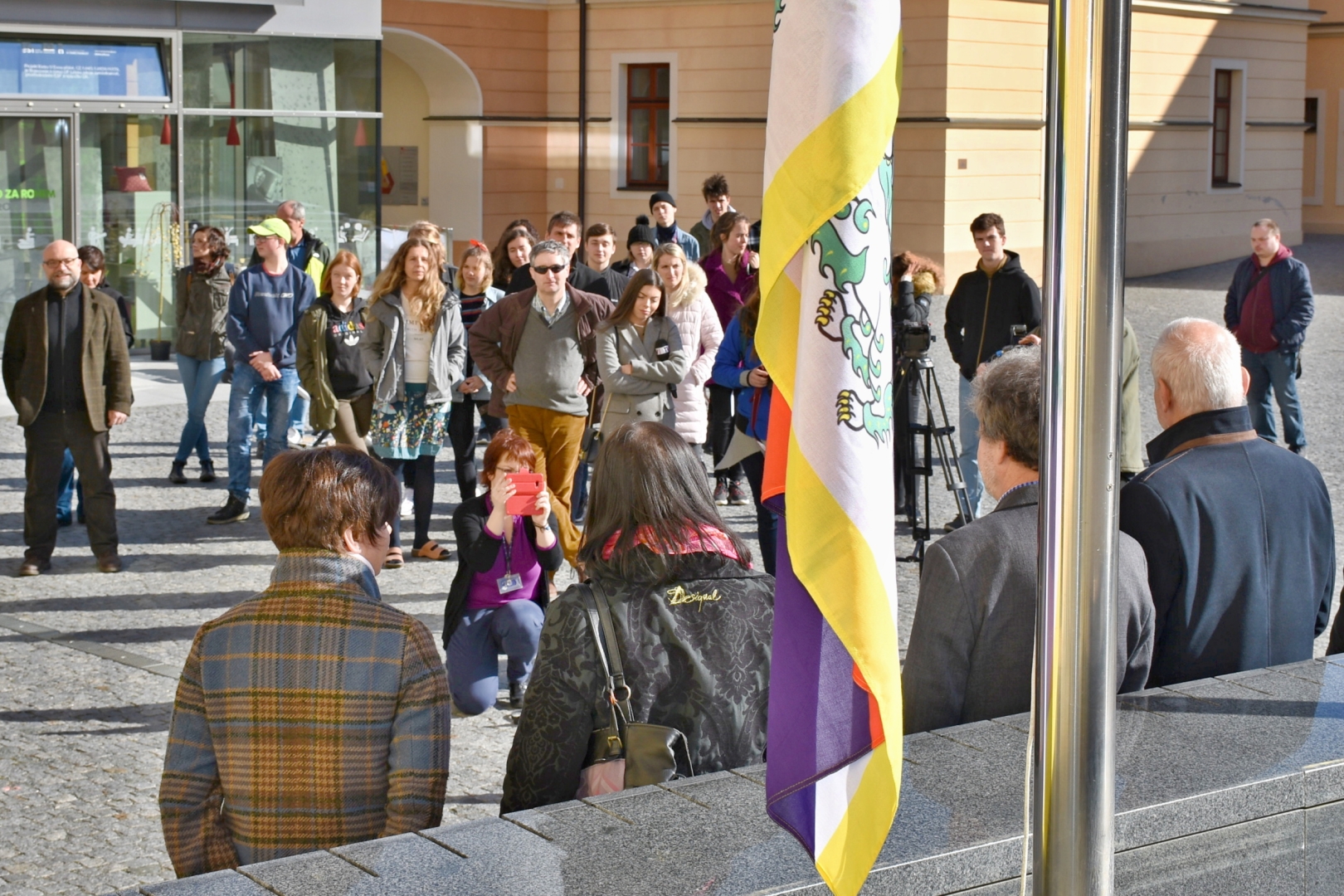 Pátečnímu vyvěšení vlajky přihlíželo zhruba 70 diváků, zúčastnila se jej i náměstkyně pro školství a kulturu Martina Berdychová a náměstek pro zdravotnictví Aleš Cabicar.