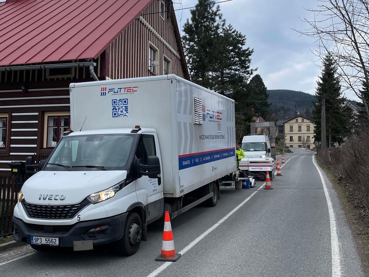 Testování proběhlo v uplynulých dnech na silnici II/297 v úseku mezi Svobodou nad Úpou a Černým Dolem na Trutnovsku. Práce byly realizovány jak během dne, tak i v nočních hodinách, aby bylo možné ověřit technologii v různých provozních podmínkách. Systém umělé inteligence zde dokázal identifikovat vznikající závady na vozovce, které byly následně opraveny právě pomocí mikrovlnné technologie od společnosti FUTTEC.