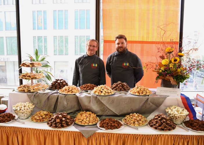 „Na velvyslanectví máme co nabídnout. Náš kraj reprezentuje tým cestovního ruchu a Centra investic, rozvoje a inovací. Catering na recepci pro zhruba pět stovek hostů zajišťují odborní mistři s žáky ze Střední školy Štefánikova z Hradce Králové. Ti do Berlína odjeli už v pondělí, jelikož všechny pokrmy připravují z místních surovin včetně překvapení v podobě 45kilového dortu,“ představil prezentaci kraje radní Pavel Hečko odpovědný za oblast regionálního rozvoje a cestovního ruchu. Kromě VOŠ, SŠ , ZŠ a MŠ, Hradec Králové, Štefánikova se na přípravě recepce podíleli také žáci Střední průmyslové školy, Odborné školy a Základní školy, Nové Město nad Metují.