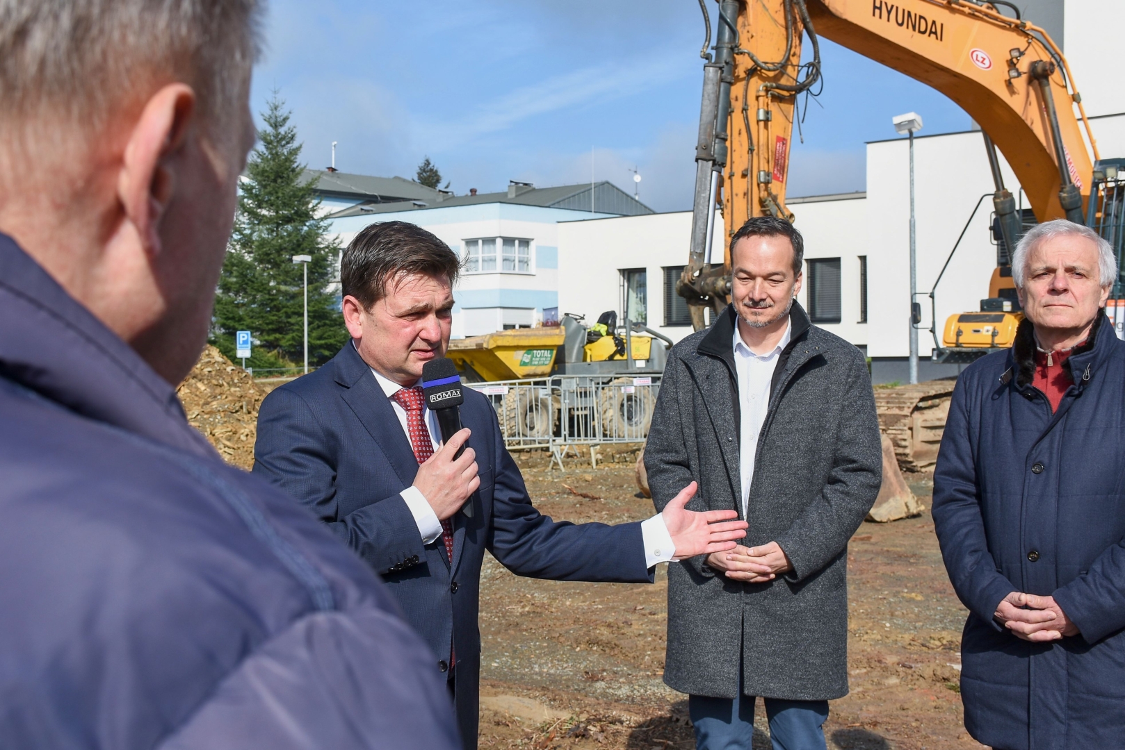 „Teď bude následovat zakládání nové stavby, pavilonu urgentního příjmu, kde budou chirurgická oddělení, zobrazovací metody a také zázemí pro záchrannou službu. Vedle toho projde modernizací současný pavilon, kde se nachází dětské oddělení, interna, gynekologie a porodnice. Obě budovy budou propojené, čímž vznikne jeden multifunkční celek, který zajistí efektivnější provoz celé nemocnice,“ upřesnil první náměstek hejtmana pro investice Pavel Bulíček.