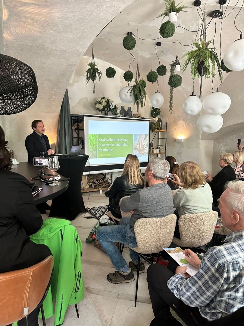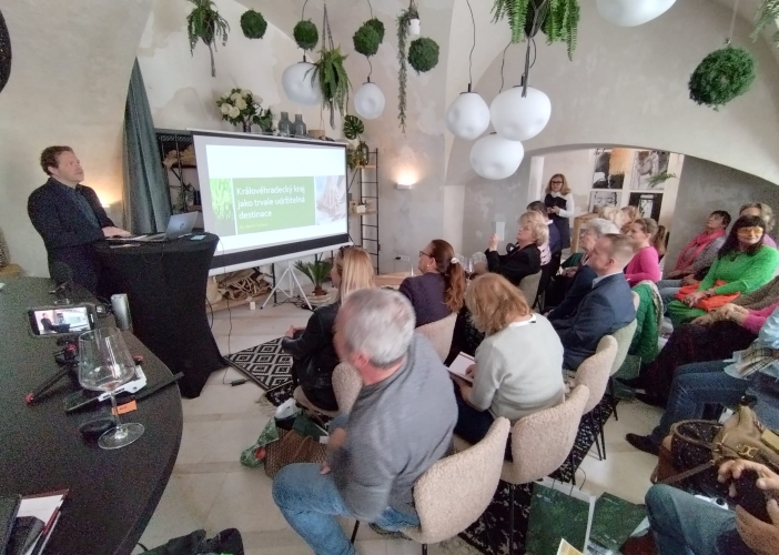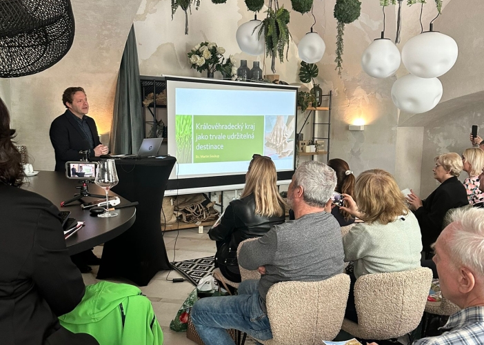 Ředitel Královéhradecké krajské centrály cestovního ruchu Martin Soukup představil přítomným novinářům cestu udržitelného cestovního ruchu, kterou se centrála na základě své strategie činnosti ubírá. ,,Velice intenzivně se věnujeme tématu overtourismu, který trápí turisticky exponované Krkonoše, Český ráj nebo Adršpašské skály. V letošním roce například chceme právě v Českém ráji vyzkoušet pilotní projekt kompostovacích toalet,“ dodal Soukup.