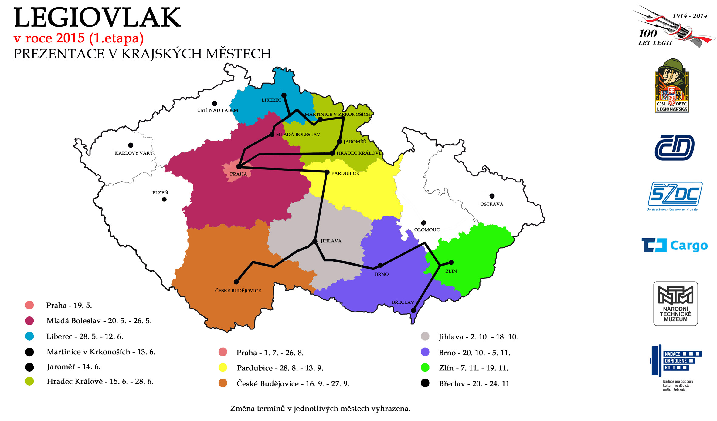 Legiovlak vyrazil na cestu po České republice 19. 5. z Prahy a mezi 13. 6. a 28. 6. se zastaví v Královéhradeckém kraji. Konkrétně 13. 6. dorazí do Martinic v Krkonoších, o den později 14. 6. do Jaroměře a na zbývajících čtrnáct dní od 15. 6. do 28. 6. se zastaví v Hradci Králové.
