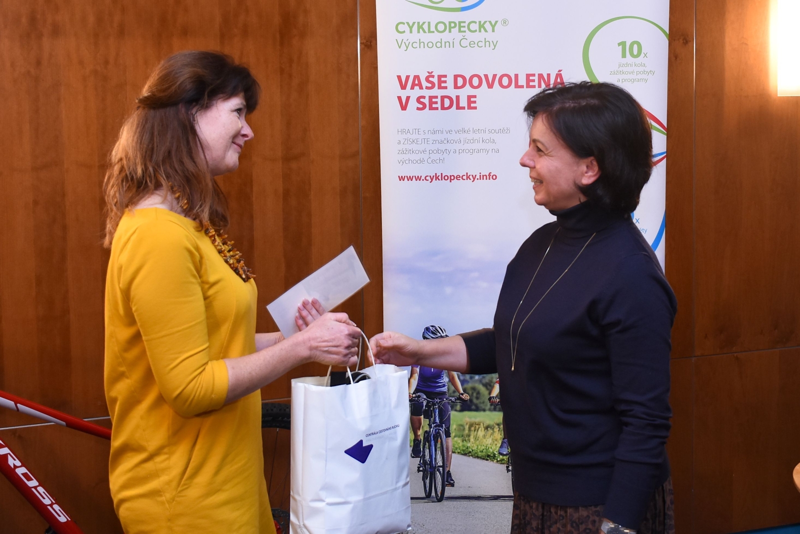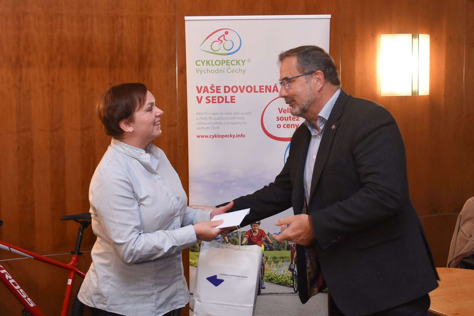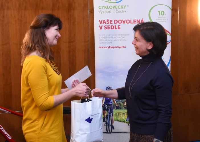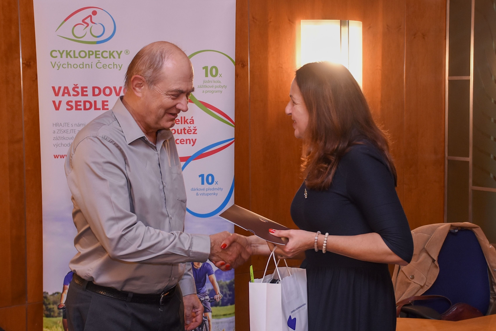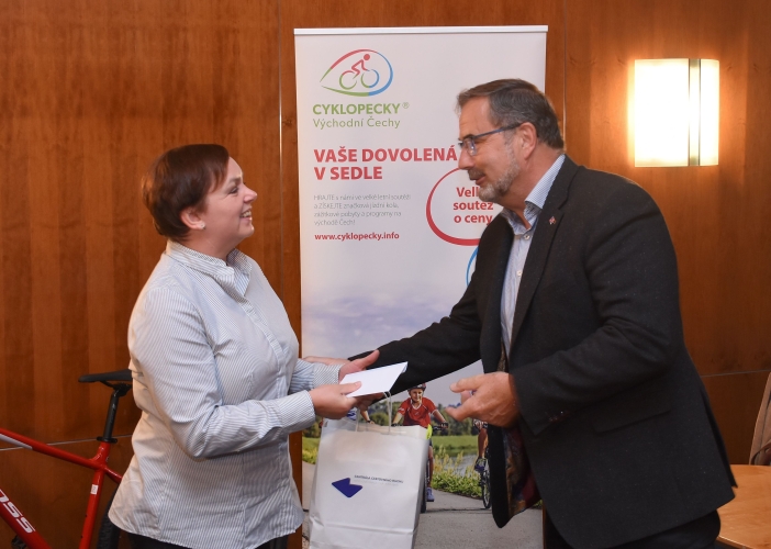 Chválou nešetřila ani paní Blanka Faltusová z Prahy: „Některé výlety jsem absolvovala na kole, které od vás loni vyhrál přítel. Zavítala jsem na něm třeba i na místo, kde v listopadu proběhlo slavnostní předání výher. Moc děkuji, že tuto soutěž organizujete a motivujete tak nás, cyklisty, k objevování nových, dosud nepoznaných míst. Ve východních Čechách je totiž stále co objevovat.“