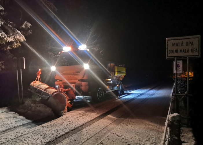 Do Královehradeckého kraje dorazila den po svatém Martinovi zima a sněžení si vynutilo první výjezdy sypačů. Silničáři v oblasti Krkonoš a Orlických hor najezdili 960 kilometrů a spotřebovali 40 tun posypových materiálů a 9 500 litrů solanky. K žádným komplikacím v dopravě díky nim nedošlo.