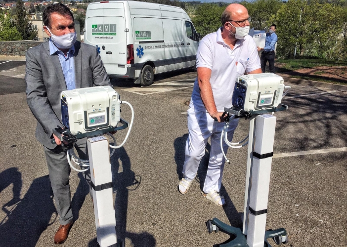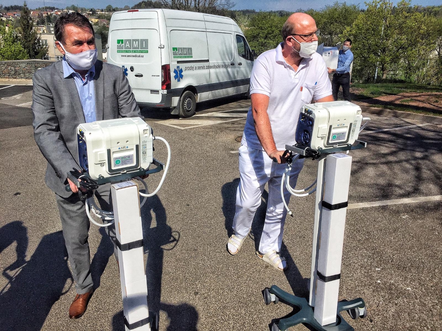 Čtyři z celkových jedenácti nových plicních ventilátorů dnes převzali zástupci Oblastní nemocnice Náchod. Královéhradecký kraj na jejich pořízení vynaložil pět milionů korun.