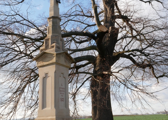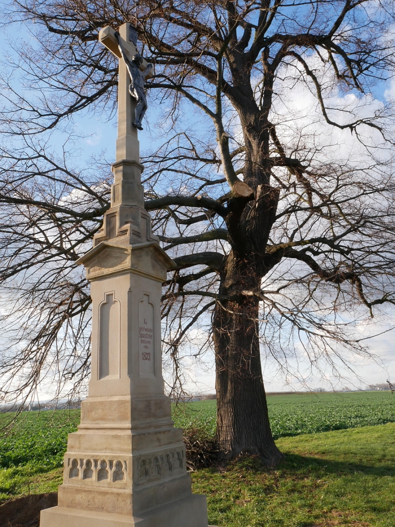 „Z historických map víme, že v blízkosti křížku kdysi stávaly chalupy, které už dávno zanikly. Na křížku se nám podařilo částečně rozluštit nápis se jménem Karolina, která podle archivů patřila k rodině Biedermannů. Ti v 19. století vlastnili okolní pozemky a křížek pravděpodobně nechali zhotovit. Je možné, že vznikl jako připomínka svatby Karoliny a Antonína Biedermanna nebo po narození jejich dětí. Památka tak vypráví příběh konkrétní rodiny, která byla s místem úzce spjatá,“ uvedla zakladatelka fondu.
