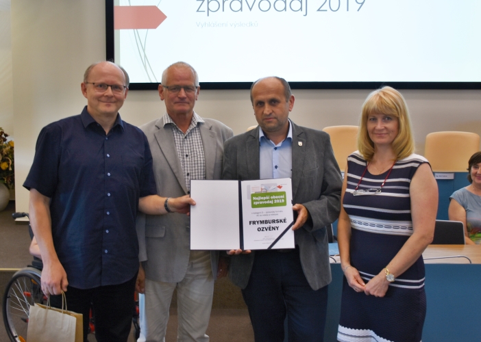 Poslední hodnocené zpravodaje byla periodika malého formátu A5. Zde si cenu odnesli zástupci městyse Nový Hrádek za jimi vydávané Frymburské ozvěny. V kategorii obcí cena putovala do Ohnišova.
