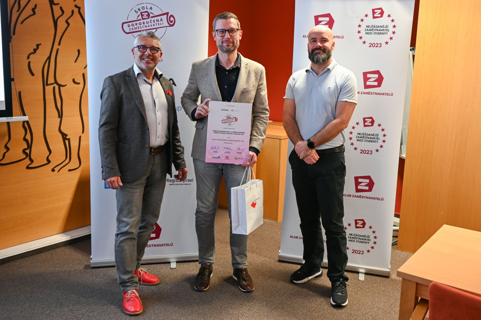 Klub zaměstnavatelů slavnostně předal v sídle Královéhradeckého kraje výroční ceny krajským školám a zaměstnavatelům v rámci dvou propojených soutěží. Nejžádanějším zaměstnavatelem mezi studenty se pro letošní rok stala společnost Škoda Auto. V soutěži Škola doporučená zaměstnavateli uspěla Střední odborná škola a Střední odborné učiliště, Hradec Králové, Vocelova.