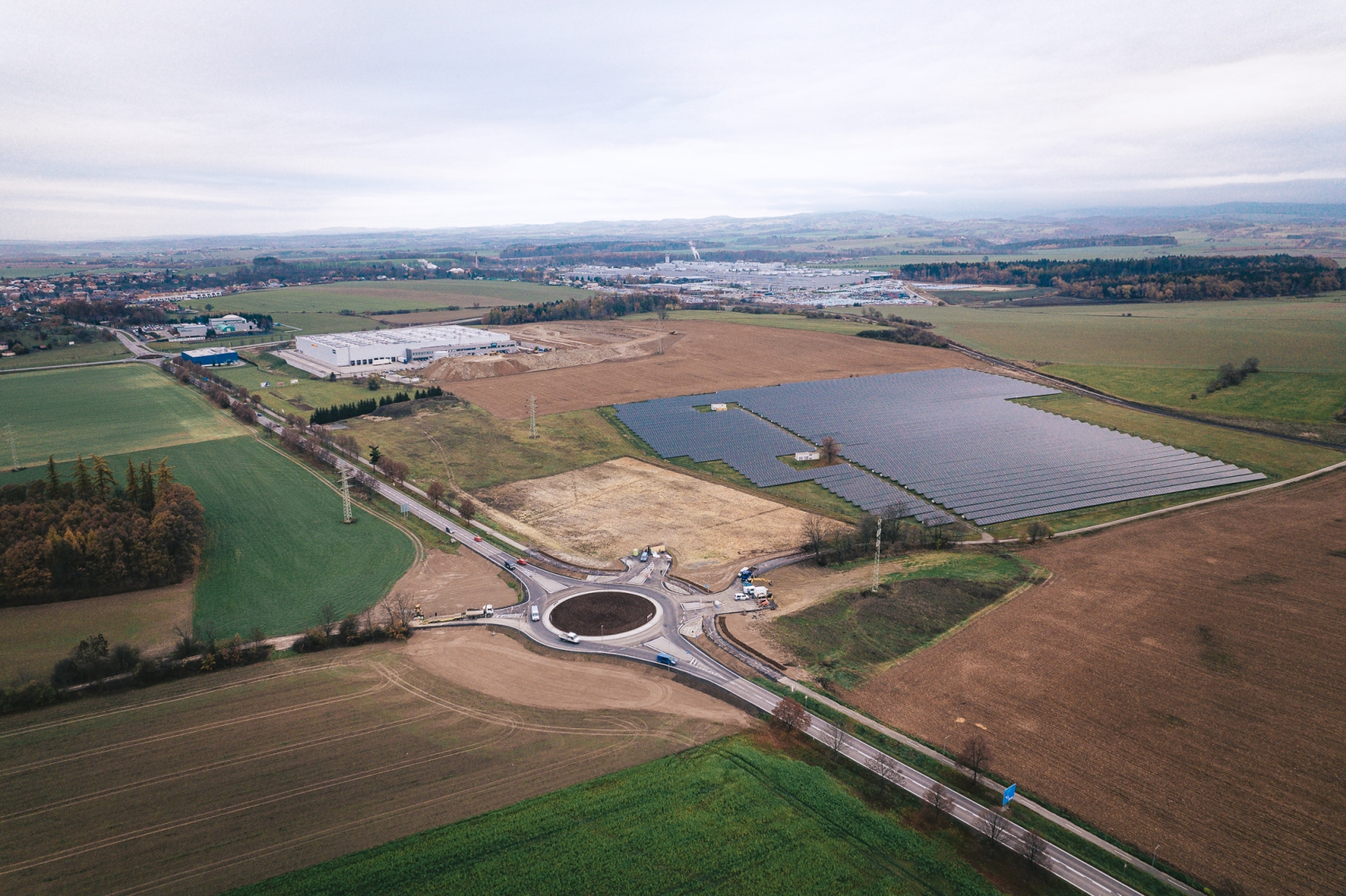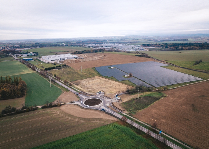 Vybudování nové okružní křižovatky spadá do projektu „Rozšíření strategické průmyslové zóny Solnice-Kvasiny a zlepšení veřejné infrastruktury v Královéhradeckém regionu“, který se realizuje od roku 2015 na základě několika vládních usnesení a také memoranda podepsaného mezi vládou, krajem a společností Škoda Auto.