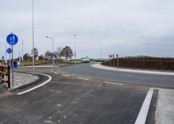„Stavbu jsme realizovali za plného provozu na silnici I. třídy se zřetelem na požadavky majitelů přilehlých pozemků, zejména nově vznikající průmyslové zóny a již provozované fotovoltaické elektrárny. V průběhu stavebních prací jsme dbali na zachování bezpečnosti silničního provozu a neohrozili jsem ani dodávky elektřiny do distribuční soustavy. Celá stavba vyšla na necelých 31 milionů korun včetně DPH,“ doplnil první náměstek hejtmana Pavel Bulíček za oblast investic. Přípravu, administraci a realizaci nové okružní křižovatky zajišťovalo oddělení průmyslových zón Centra investic, rozvoje a inovací (CIRI). Zhotovitelem stavby byla společnost M-SILNICE oblastní závod SEVER.