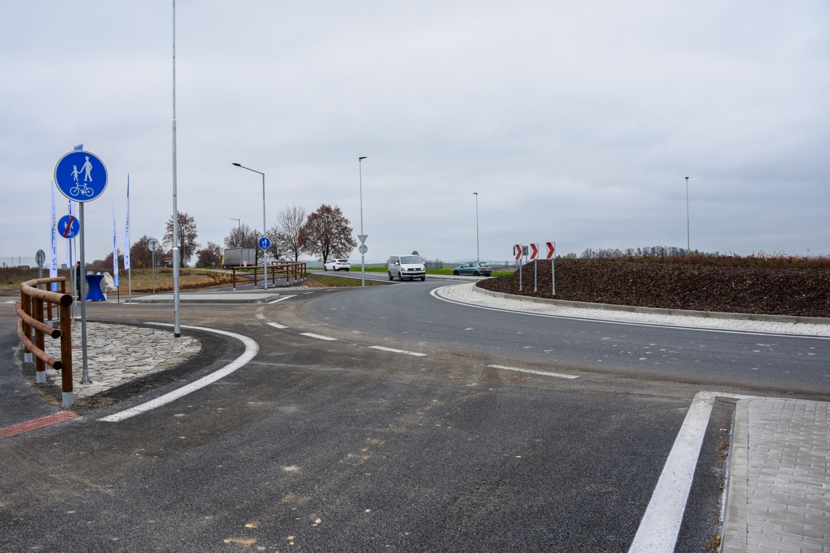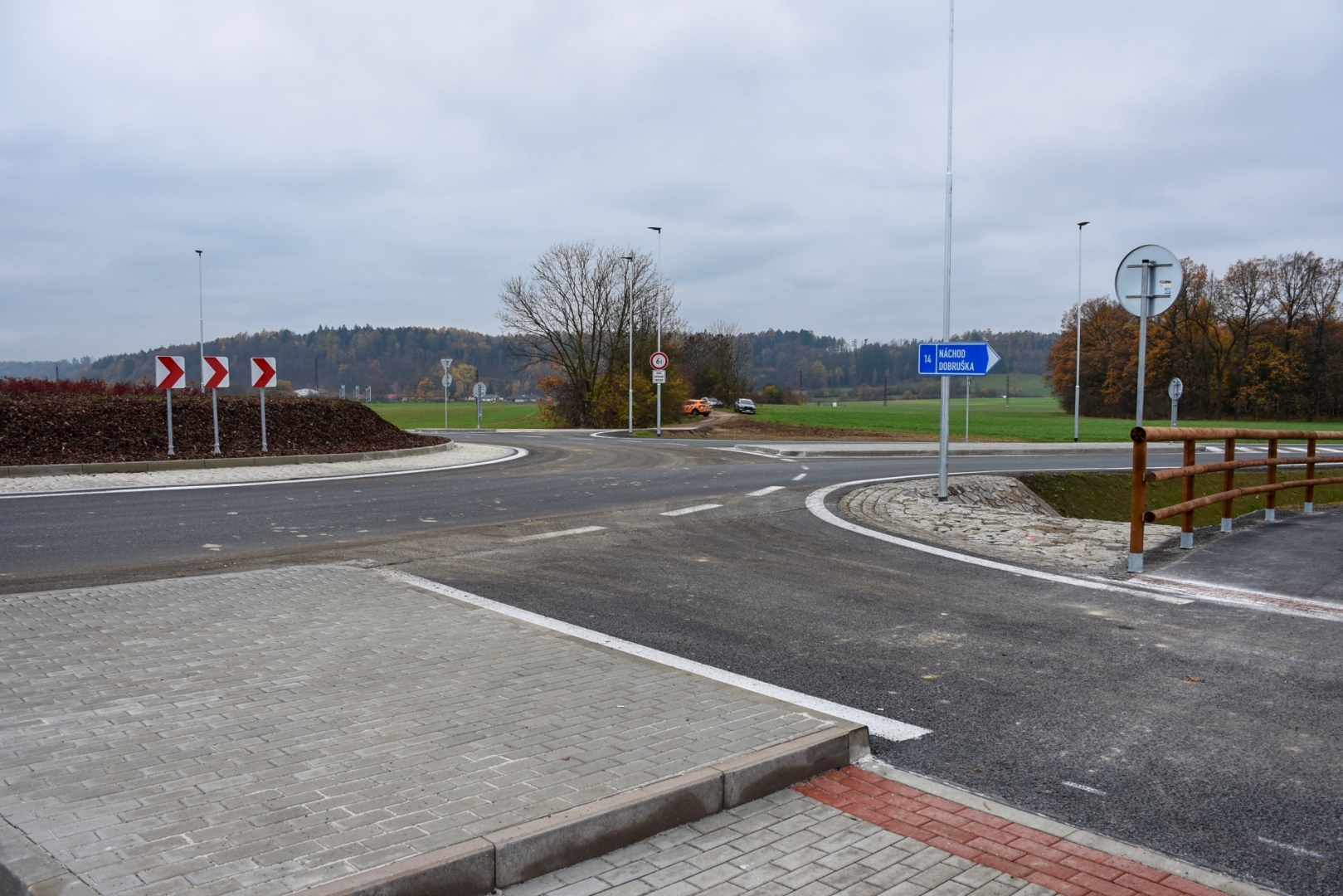 Okružní křižovatka je nově osvětlena, stavbaři vybudovali propustky a dopojení dešťové kanalizace. Součástí projektu je přeložka cyklostezky mezi Solnicí a Rychnovem nad Kněžnou včetně zábradlí, přeložka vodovodního řadu, optického kabelu, napojení účelové komunikace k fotovoltaické elektrárně, rekultivace a vegetační úpravy.