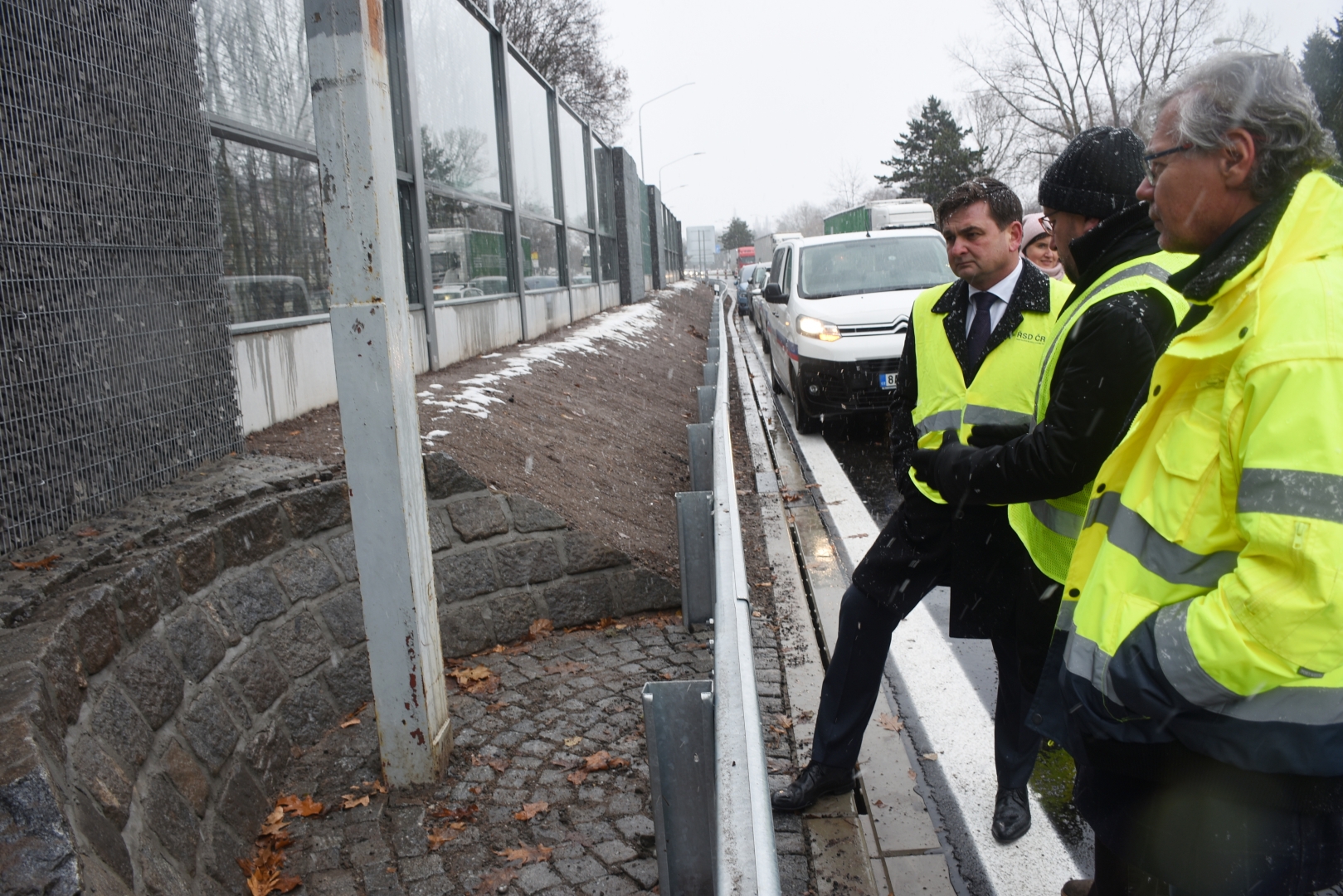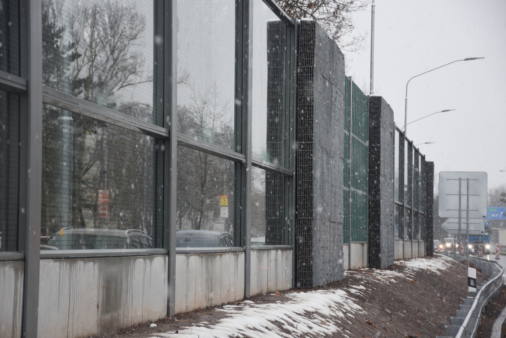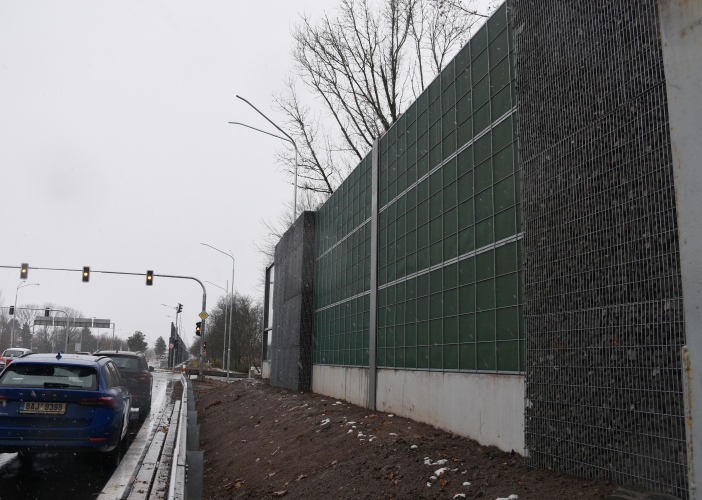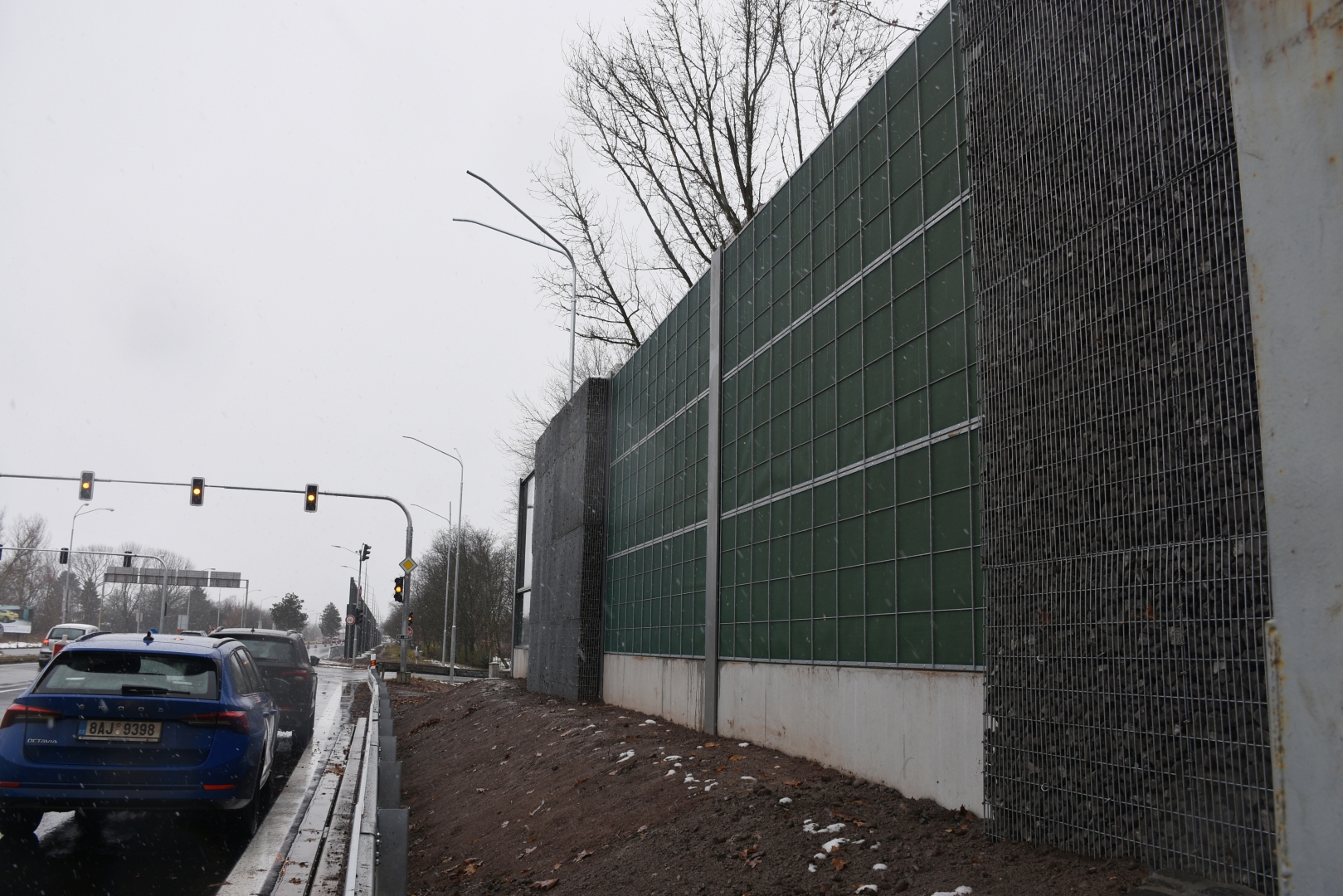 Protihluková stěna je dlouhá tři čtvrtě kilometru a vyšla na více než 50 milionů korun. Díky ní se sníží denní hladina hluku o 9 decibelů, noční o 3,5 decibelu. Stavba byla zahájena letos v květnu. Stěna je rozdělena na dvě části s výškou od 4,2 do 6,2 metru, přičemž v každé části jsou dva únikové východy. Konstrukce stěny je doplněná gabionovými koši s použitím výplňového materiálu z pěnového skla, které pohlcuje zvuk, a panely určenými pro oboustranné prorůstání popínavými rostlinami. Transparentní výplň je navržena v rámu a celoplošně s trvalými tenkými pruhy pro snížení úmrtnosti ptáků. Během stavby proběhly také přeložky sítí a bylo vybudováno nově osvětlení.