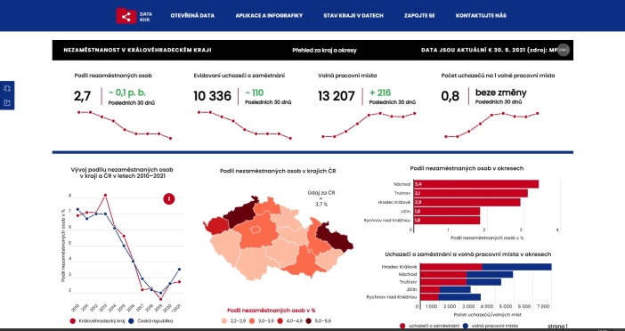 Uživatelé na datovém webu zjistí, jak vypadá Královéhradecký kraj z pohledu statistických dat. Výstupy se zde nacházejí v různých formách a na základě těchto údajů je možné vytvořit podklady k různým rozhodovacím procesům, případně je studenti mohou využít jako podklady pro své práce.