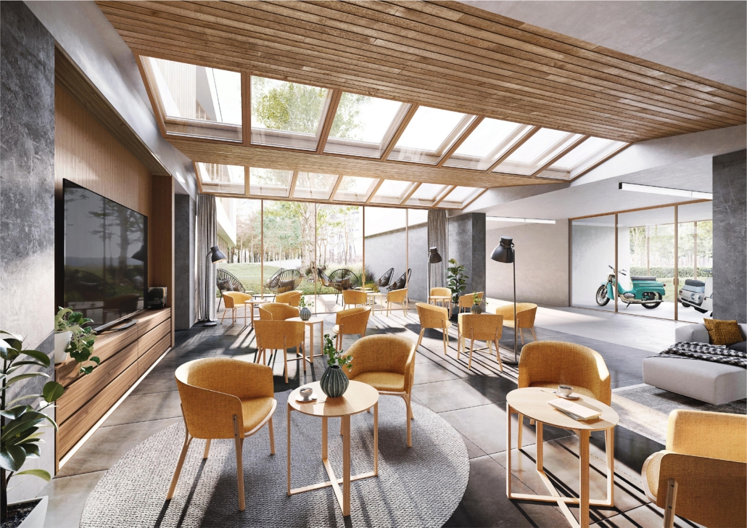 Ve společných prostorách bude pro klienty kromě vstupní haly či výtahu k dispozici také relaxační místnost, „vzpomínková“ místnost či místnost pro ruční práce, dále hygienické zázemí pro návštěvy, ošetřovna a také bezbariérové WC či koupelna asistovaného mytí.