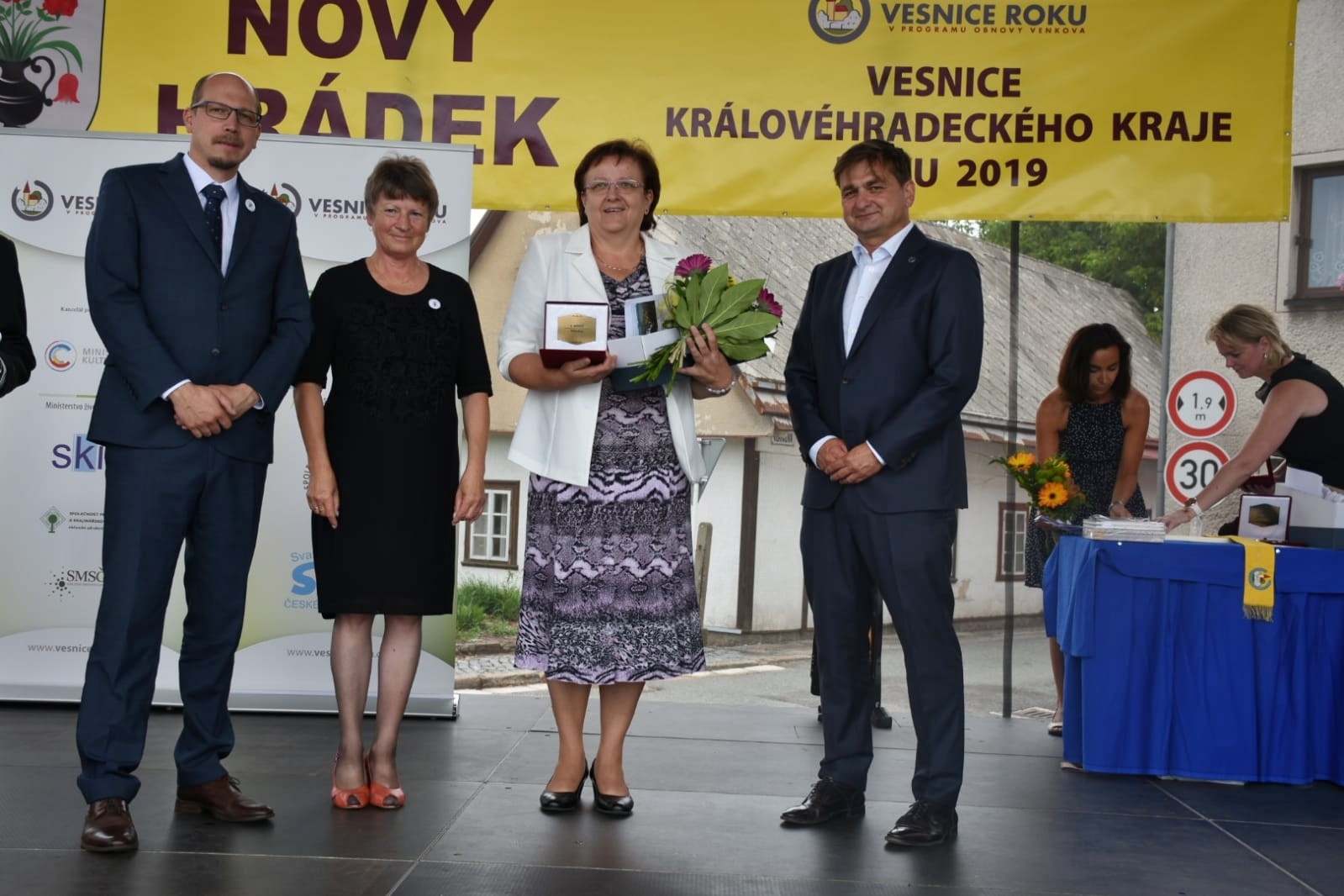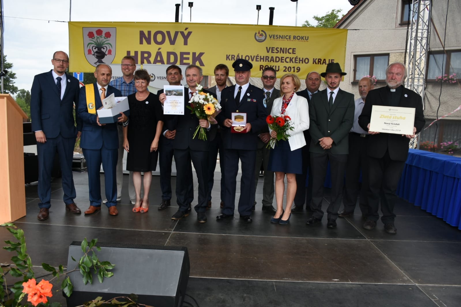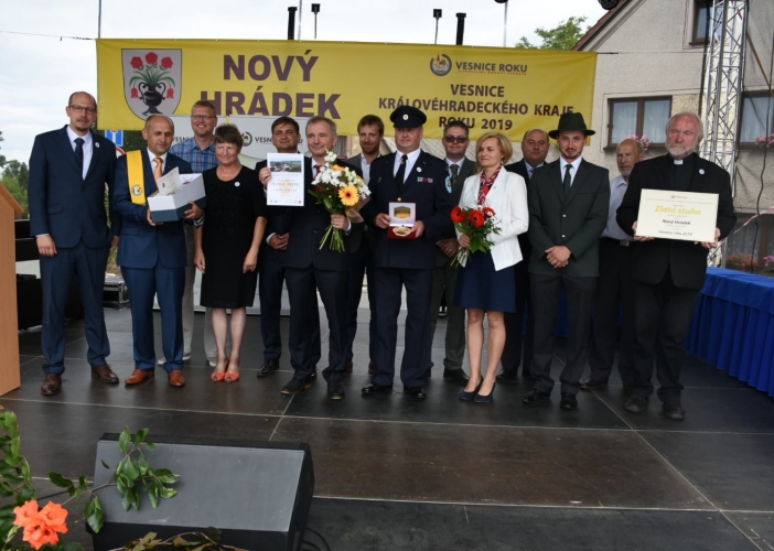 Oficiální tečku za letošním krajským kolem soutěže Vesnice roku udělalo sobotní předávání ocenění na Novém Hrádku. Městys na Náchodsku se pyšní zlatou stuhou pro vítěze a bude náš kraj reprezentovat v celostátním finále. Modrou stuhu za společenský život získalo Strážné (TU). Bílou stuhu za činnost mládeže udělila porota obci Nepolisy (HK). Oranžovou stuhu za spolupráci obce se zemědělským subjektem má Rudník (TU). Porotci udělili také druhé a třetí místo. Na pomyslných stupíncích vítězů tak stanuly Žďár nad Metují (NA) a Vilantice (TU). Další obce si mezi sebou rozdělily ceny hejtmana.