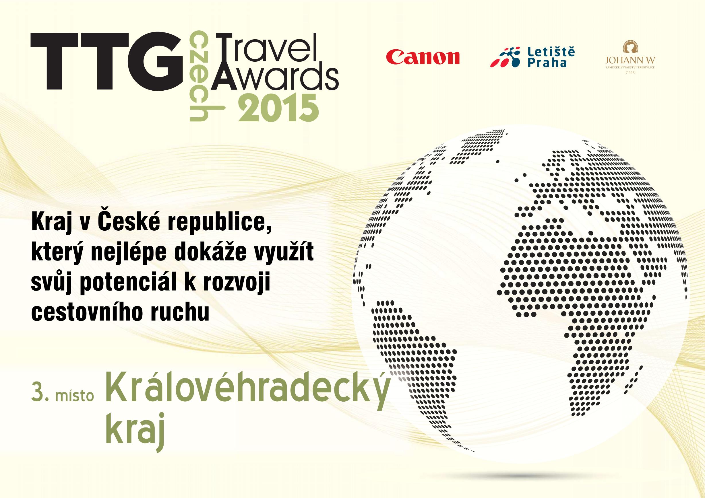 Královéhradecký kraj obdržel nová ocenění z oblasti turistického ruchu. Na slavnostním ceremoniálu letošního ročníku TTG TravelAwards, který se tentokrát konal v rámci galavečera veletrhu HolidayWorld ve Španělském sále Pražského hradu získal dvě třetí místa. Ocenění si odvezl v kategorii Nejlepší propagační materiál za loni vydaný komplet krajských cyklomap. Další 3. místo potom získal v anketě TTG Czech travel Awards 2015 v kategorii Kraj v České republice, který nejlépe dokáže využít svůj potenciál k rozvoji cestovního ruchu. V rámci galavečera se vyhlašuje 16 kategorií a jde o prestižní anketu cestovního ruchu, kterou již 18 let pořádá vydavatelství odborných novin TTG Czech.
