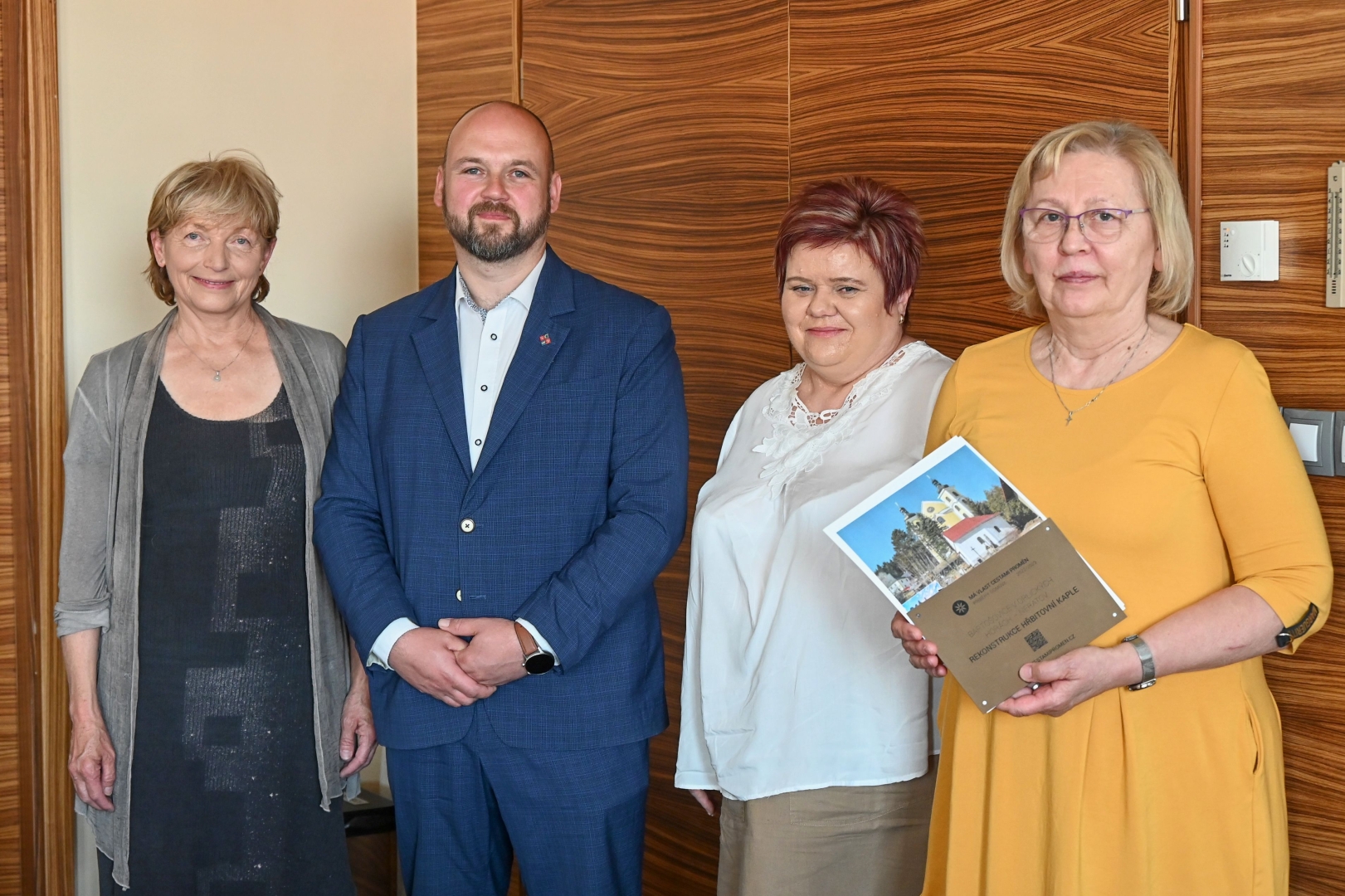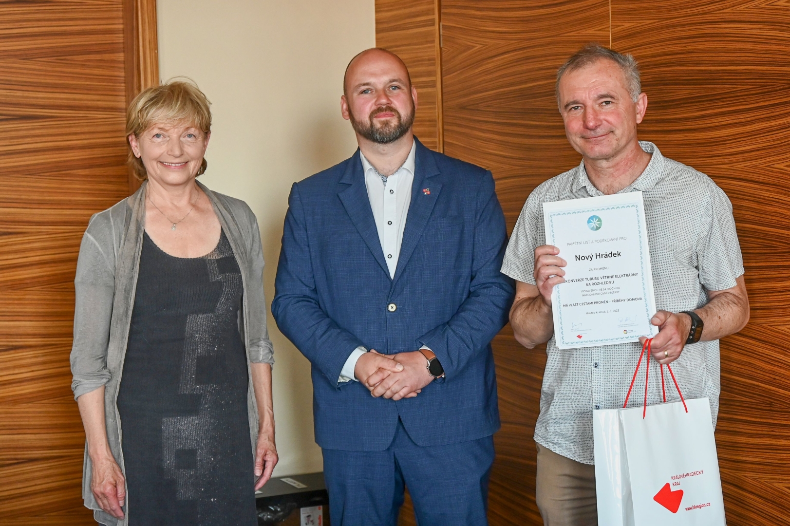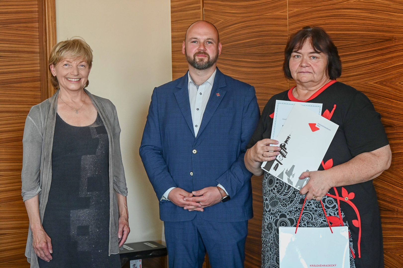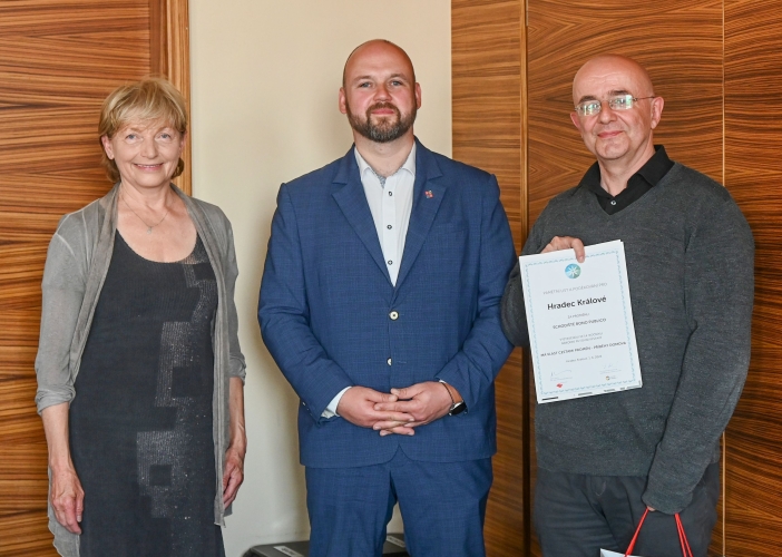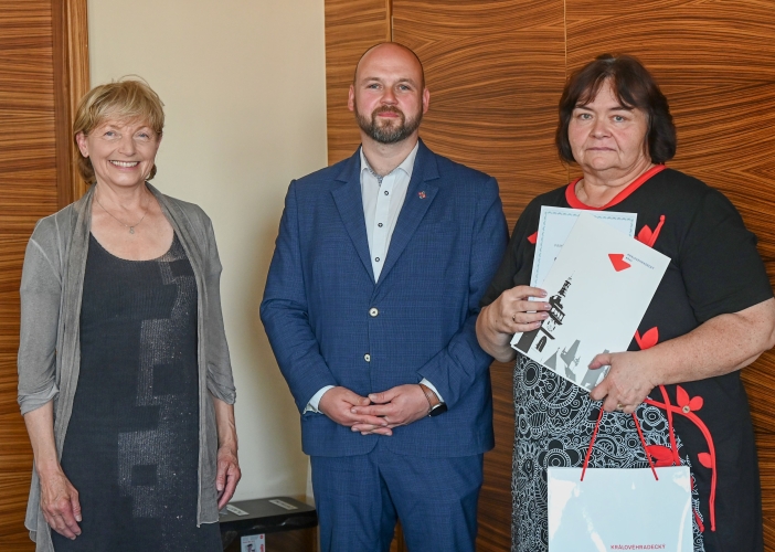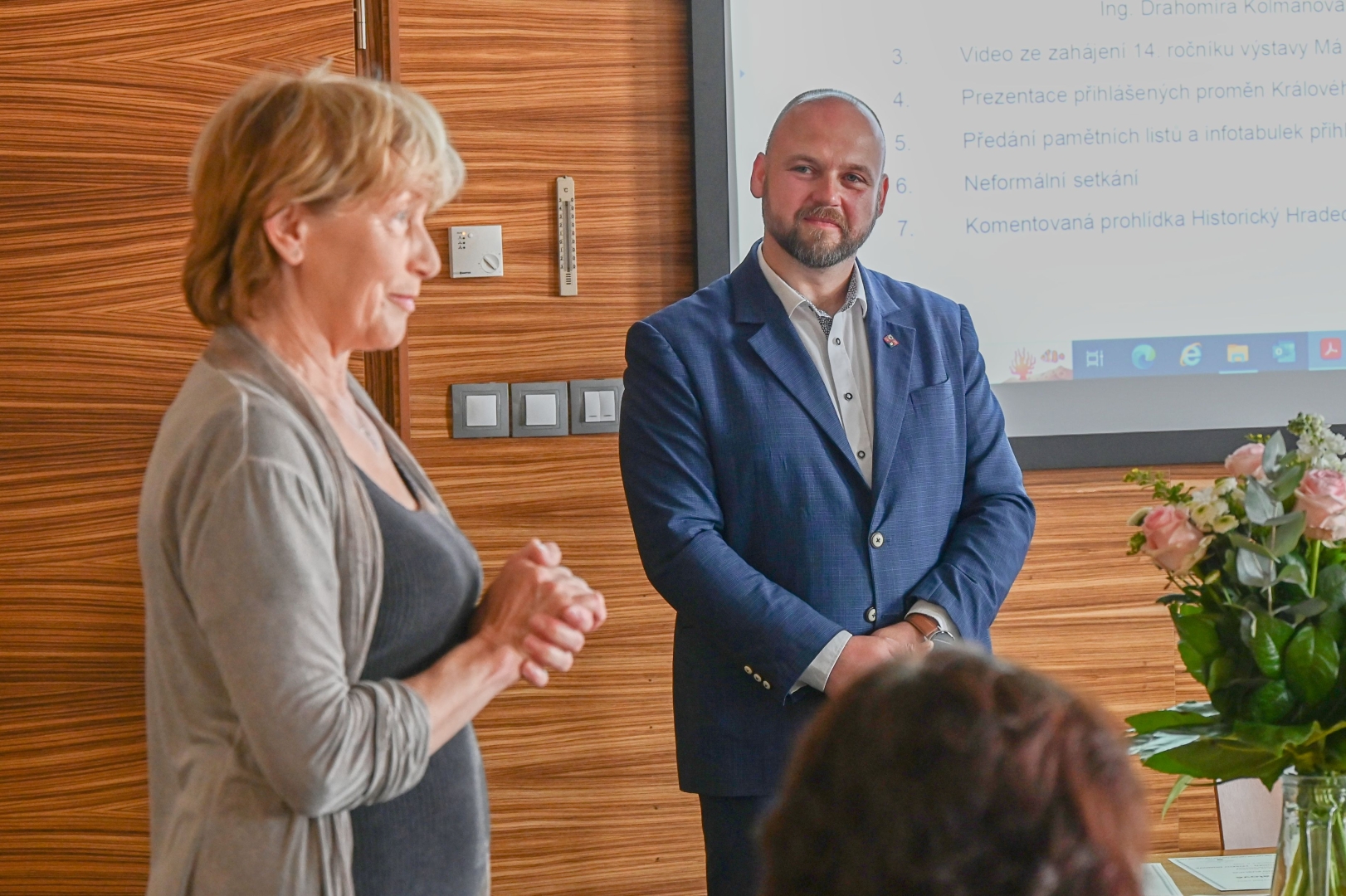 Zástupci měst, obcí a institucí z Královéhradeckého kraje, kteří reprezentují proměny svého okolí ve 14. ročníku mezinárodní putovní výstavy Má vlast cestami proměn – příběhy domova, se dnes sešli v sídle krajského úřadu, aby si z rukou radního Adama Valenty převzali pamětní listy a poděkování za obdivuhodné znovuoživení zapomenutých míst a objektů. Letošní ročník reprezentovalo 10 projektů z našeho kraje a v anketním hlasování veřejnosti se nejlepšími proměnami staly rekonstrukce hřbitovní kaple v Bartošovicích v Orlických horách a obnova historického kříže v Broumově.