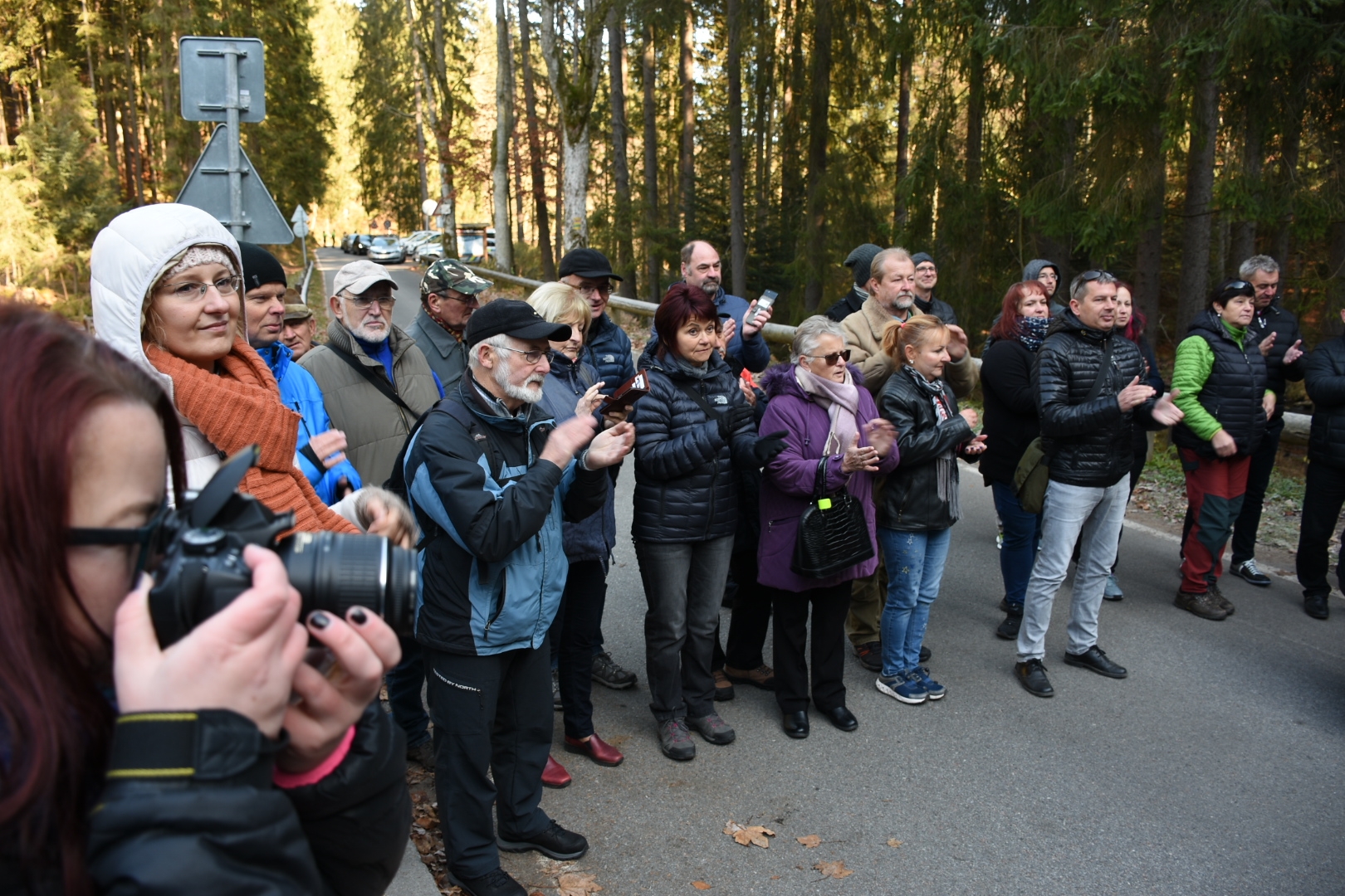 Předání se zúčastnili partneři projektu, zástupci dotčených obcí, spádová turistická centra a zástupci značkařů Královéhradeckého a Pardubického kraje. Značení symbolicky předal předseda Rady značení KČT Pavel Přílepek do rukou členů Rady Pardubického kraje Hany Štěpánové a René Živného a člena Rady Královéhradeckého kraje Pavla Hečka.