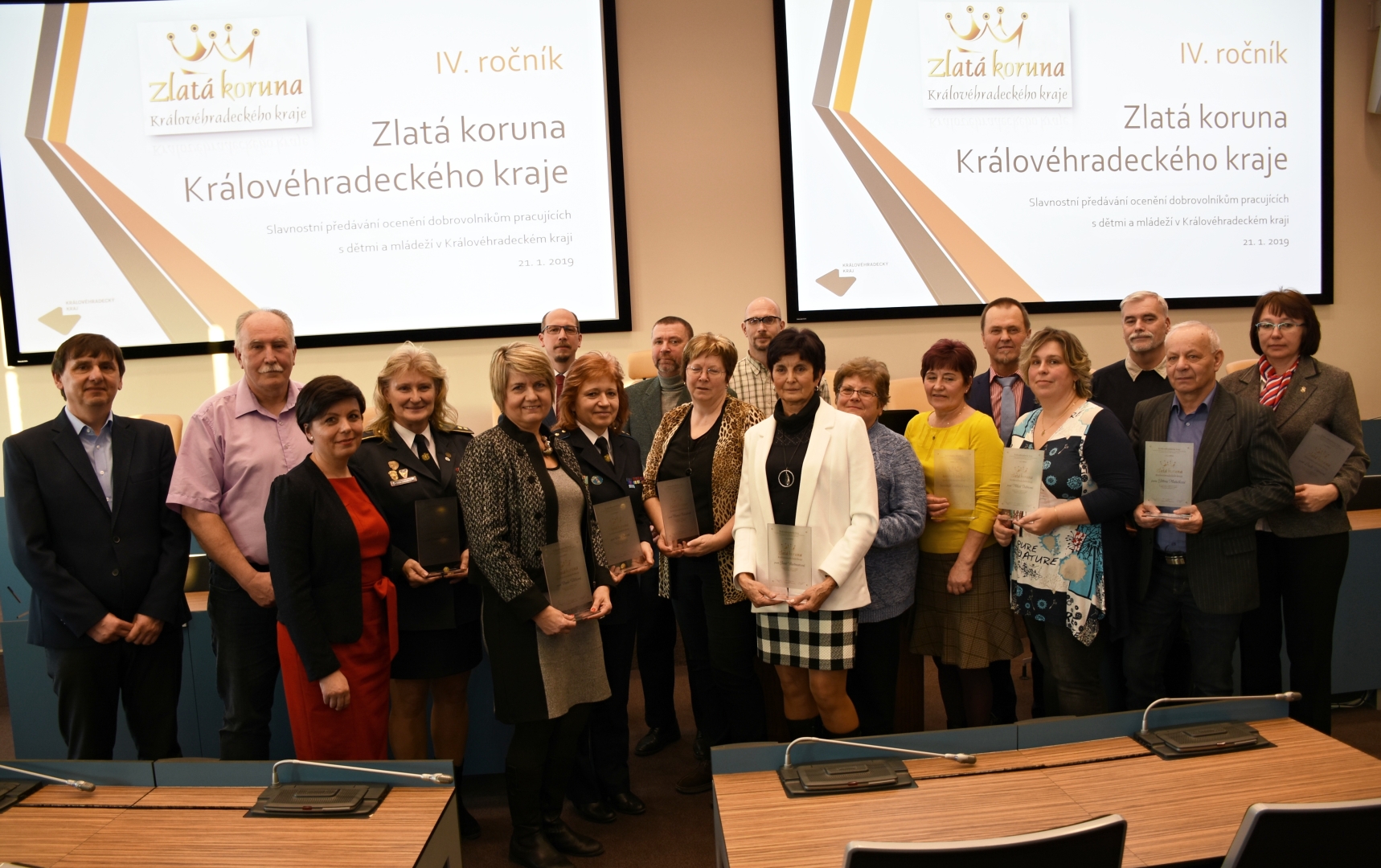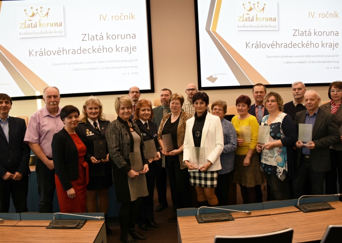 Ocenění Zlatá koruna Královéhradeckého kraje obdrželo z rukou hejtmana Jiřího Štěpána a náměstkyně Martiny Berdychové patnáct dobrovolníků, kteří dlouhodobě pracují s dětmi a mládeží. Ocenění tak získali sportovci, dobrovolní hasiči nebo zástupci společenských a kulturních organizací, kteří se již několik let nezištně věnují činnosti s dětmi a mládeží.