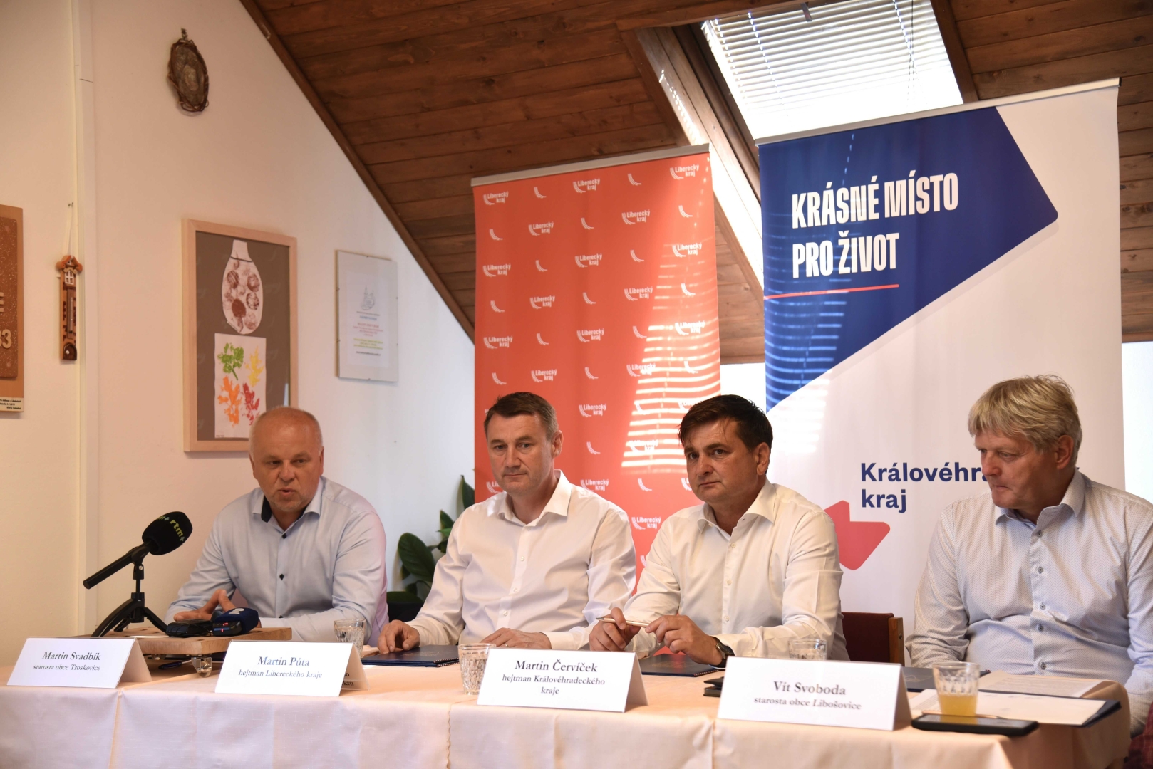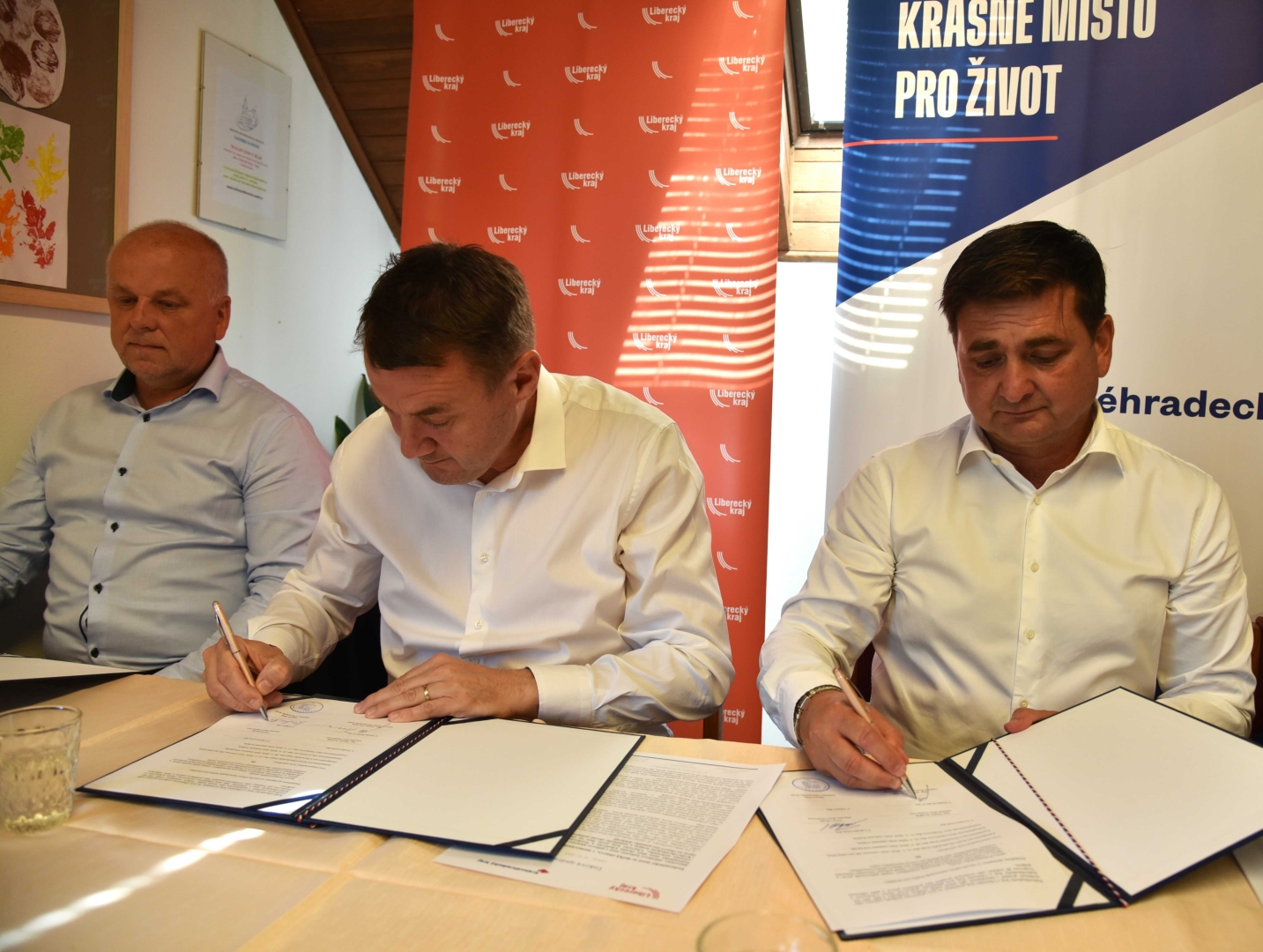 Memorandum o spolupráci dnes na obecním úřadě v Libošovicích podepsali jmenovitě hejtman Libereckého kraje Martin Půta, hejtman Královéhradeckého kraje Martin Červíček, starosta obce Libošovice Vít Svoboda a starosta obce Troskovice Martin Svadbík. Zastupitelstva všech signatářů schvalovala znění memoranda v květnu letošního roku.