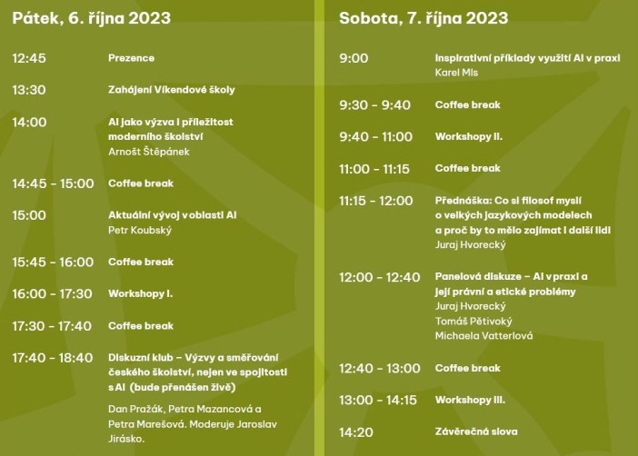 PROGRAM VÍKENDOVÉ ŠKOLY AI (může být průběžně doplněn)