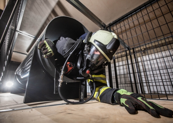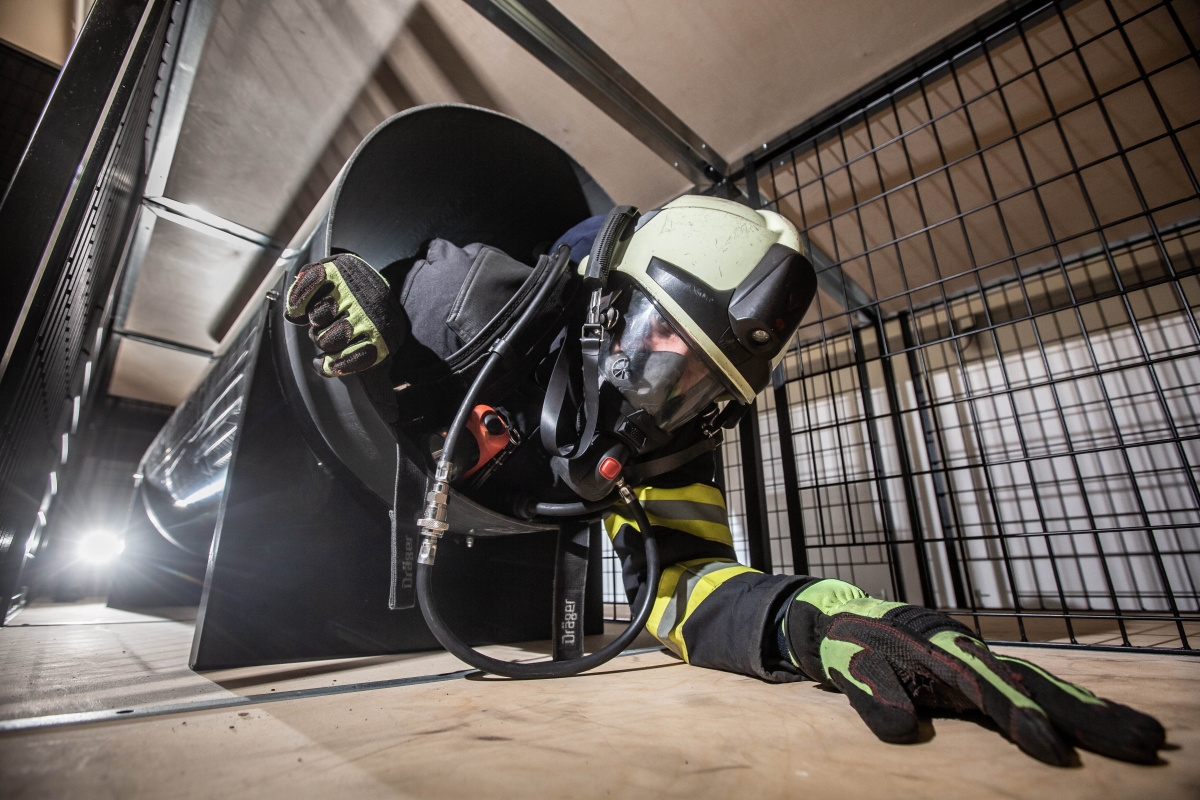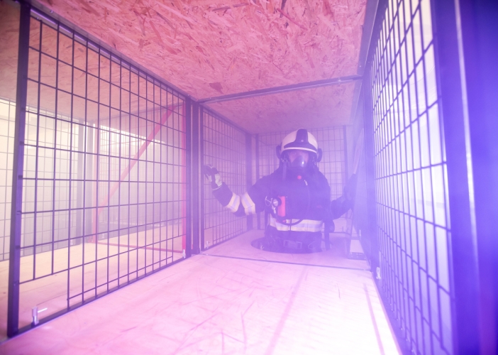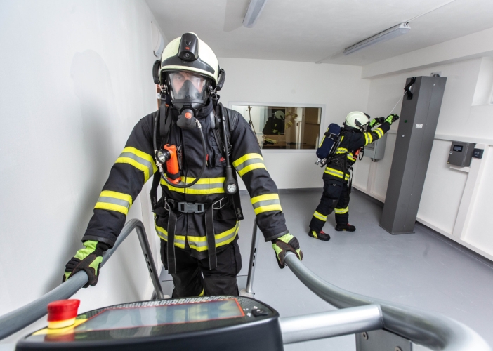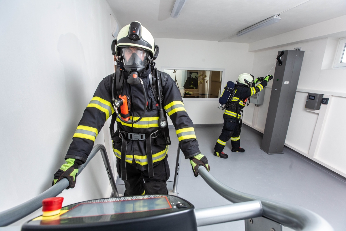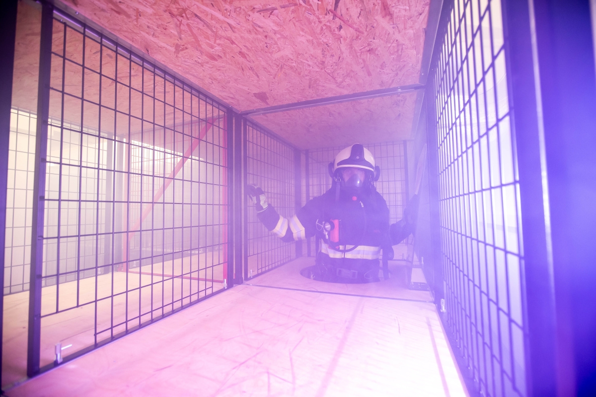 Toto výcvikové zařízení je rozděleno do několika částí. V první je tělocvična, ve které si hasiči mohou před vstupem do polygonu spočítat osobní spotřebu vzduchu za použití dýchací techniky při vysokém zatížení. Zkouší to na nekonečném žebříku, při zvedání závaží, tzv. kladiva nebo na pásovém běžeckém trenažeru. Veškeré vybavení je extrémně robustní, aby bylo možné stroje používat v plné výstroji a výzbroji hasičů.