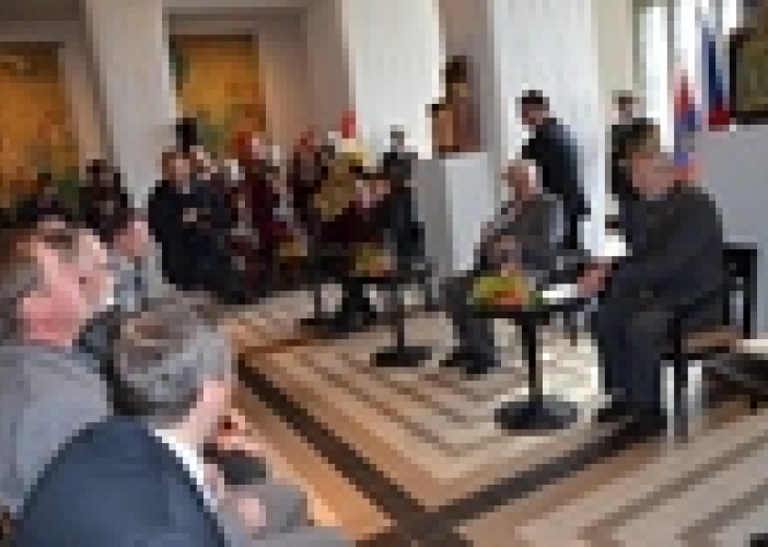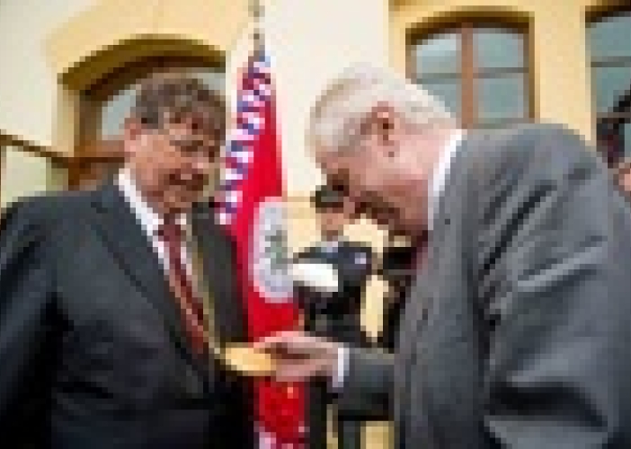 Poté již prezidenta uvítali zástupci města v čele s primátorem Zdeňkem Finkem v Muzeu východních Čech. Na primátorovu neformální otázku, proč Miloš Zeman opustil Vysočinu a odhodlal se k prezidentskému "angažmá" s rozplánovaným diářem do poslední minuty, prezident odpověděl: "Člověk by měl myslím přijmout každou výzvu. Pokud ji nepřijme, rovnou prohrál. Je tu ale i druhá varianta, a té bychom se neměli dobrovolně vzdávat." Hovořilo se také například o kriminalizaci politických rozhodnutí. "Každé rozhodnutí nemůže být správné. Proto není dobré jej ihned kriminalizovat. Na druhou stranu je ale nutné důsledně pátrat po tom, zda nebylo motivováno snahou se osobně obohatit," řekl prezident.