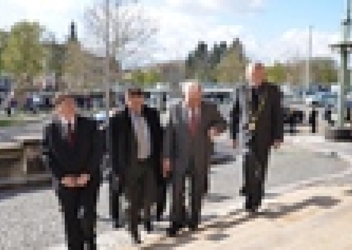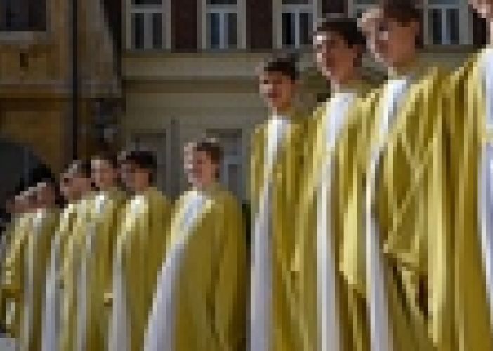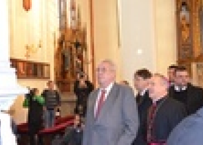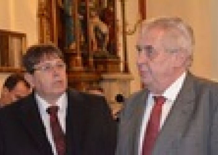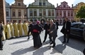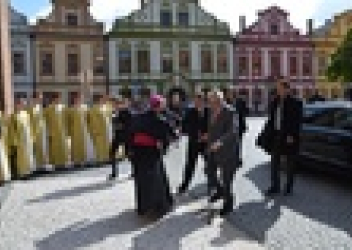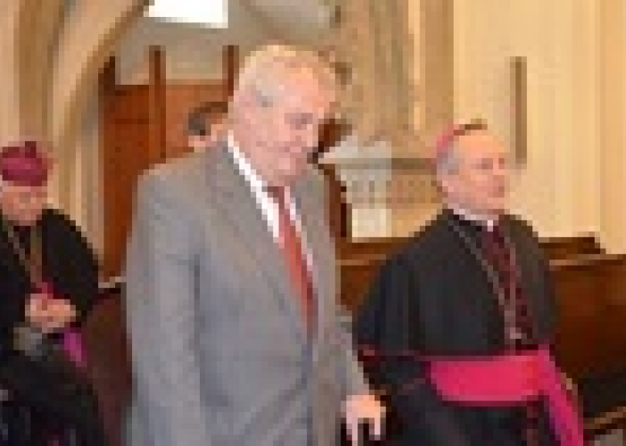 Do katedrály sv. Ducha na náměstí Jana Pavla II. uvedl prezidenta Zemana a hejtmana France královéhradecký biskup Jan Vokál. "Zážitkem bylo jen vstupovat do katedrály, obklopeni chlapeckým sborem Boni Pueri," řekl hejtman Franc. Jejich Ave Maria zněla gotickým chrámem po třetí hodině odpolední a nebýt kamer a fotoobjektivů, bylo to vytržení z reality, kterou každý z přítomných v té chvíli vnímal. "Uvedomuji si význam církve pro náš národ i společnost. S kardinálem Dukou často hovoříme o úloze hospiců. Myslím si, že právě církev by měla umožnit lidem důstojné umírání," vyjádřil své prezident Zeman, který v katedrále vyslechl modlitbu za arcibiskupa Karla Otčenáška. K jeho pamětní desce poté položil květiny.