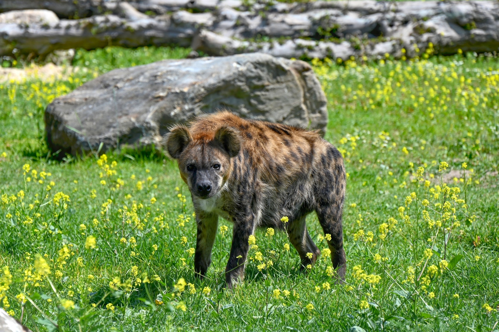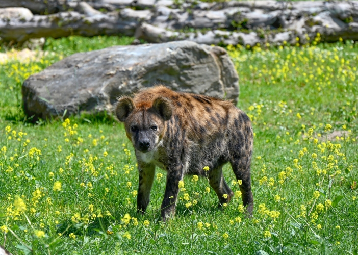 Po opuštění průchozích voliér návštěvník dojde až k velké otevřené expozici hyen skvrnitých se suchými kmeny mohutných stromů, umělými norami pro odpočinek i brouzdalištěm, kde se tyto mohutné šelmy mohou ochlazovat. Zpředu dělí lidi od hyen pouze vodní příkop s rákosím, zatímco zadní hranice výběhu se ztrácí za horizontem mohutného valu, takže výběh působí velmi přírodním a nekonečným dojmem.