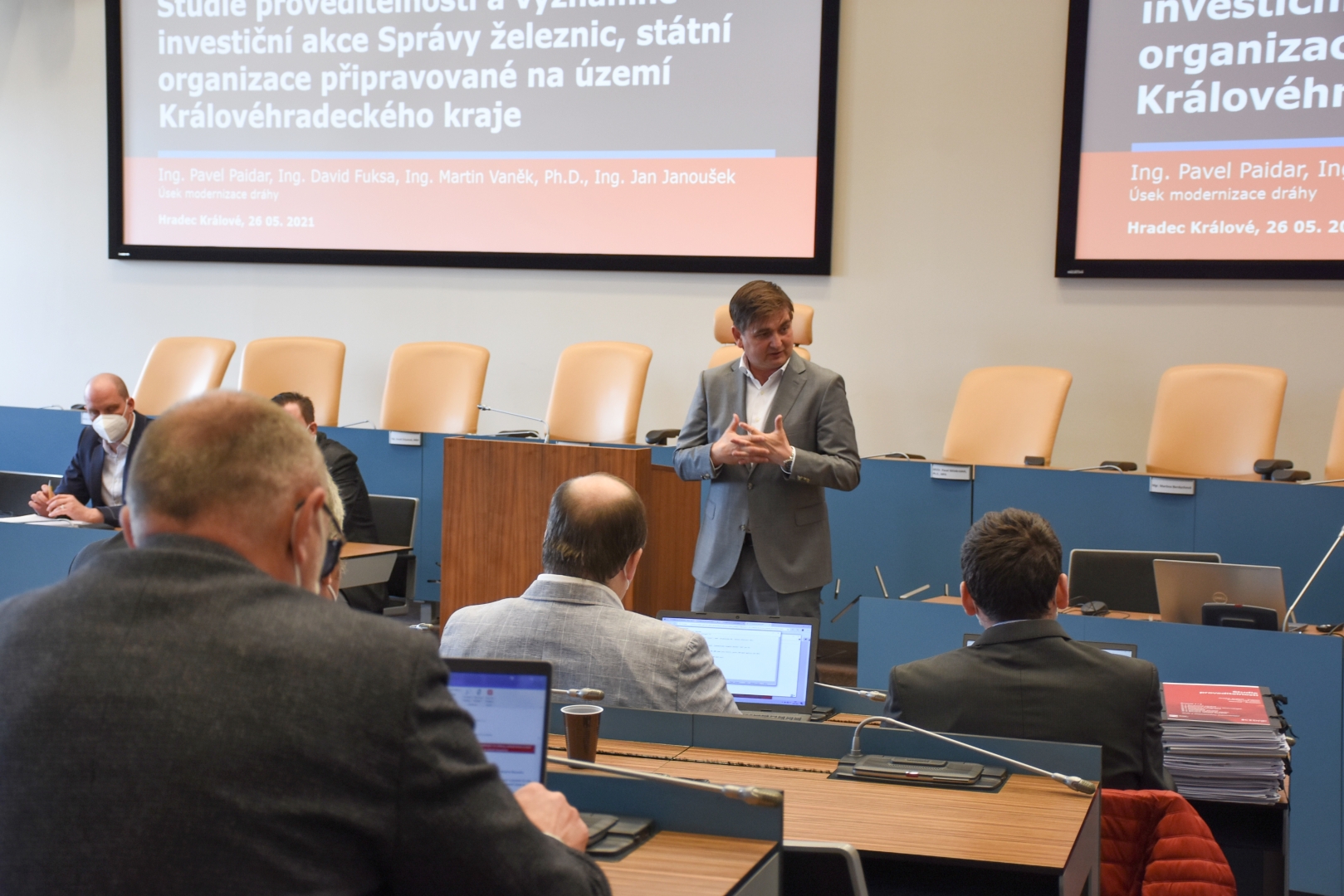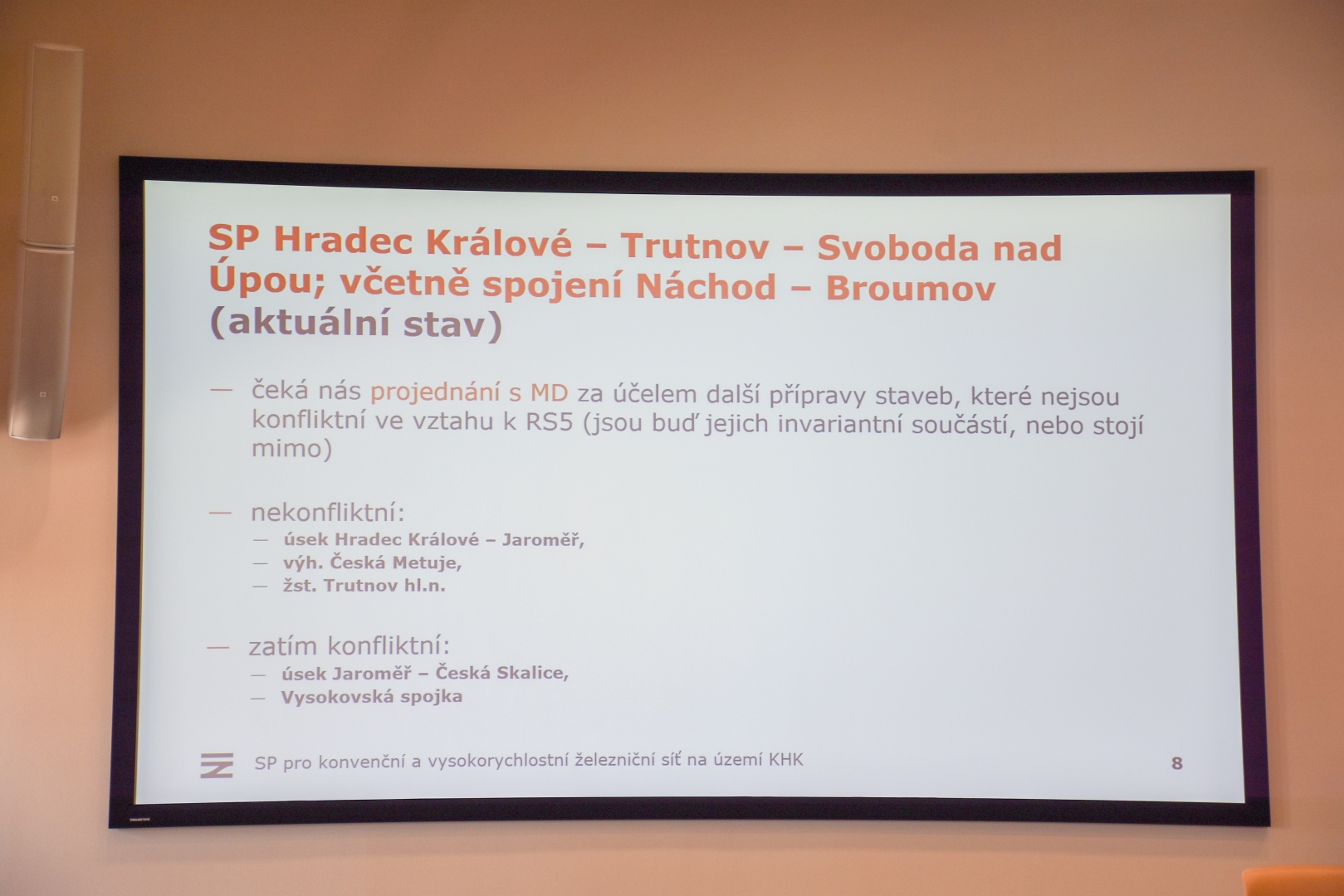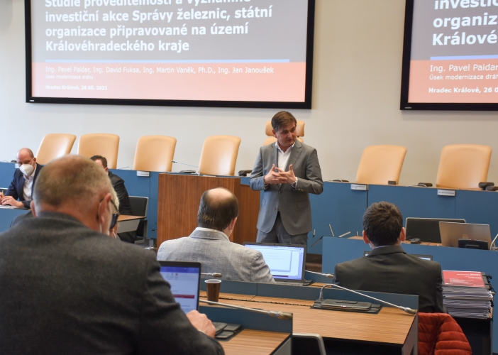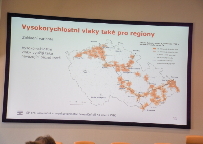 „Ukazuje se, že výstavba takzvané Vysokovské spojky by byla z ekonomického hlediska rentabilní. Cestování vlakem z Hradce Králové do Náchoda by se po modernizaci tratí mohlo zkrátit až o dvacet minut. Prvořadé je ale vybrat ze šesti možných variant trasy vysokorychlostní trati, která by mohla se záměry na konvenční železnici kolidovat, a také připravit zdvojkolejnění úseku Hradec – Jaroměř, který je kapacitně nevyhovující,“ říká hejtman Martin Červíček, který setkání v sále zastupitelstva zahájil.