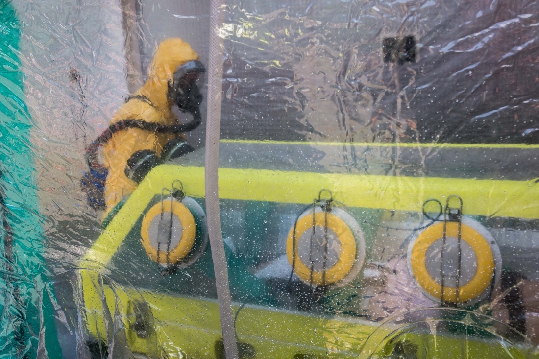 Biohazard tým Zdravotnické záchranné služby KHK provedl za asistence a technické podpory jednotky požární ochrany HZS KHK zajištění a umístění pacienta do transportního izolačního prostředku, tzv. bioboxu. Zasahující záchranáři a hasiči byli při tom po celou dobu oděni do speciálních ochranných obleků. Následně provedli hasiči dekontaminaci přepravního prostředku, členů biohazard týmu i zdravotníků, kteří přišli do kontaktu s potenciálně nakaženou osobou. Po celou dobu cvičení měli zasahujicí ztížené podmínky, a to kvůli tropickým teplotám a velkému teplu.