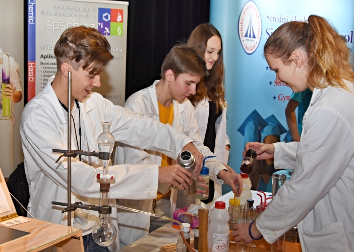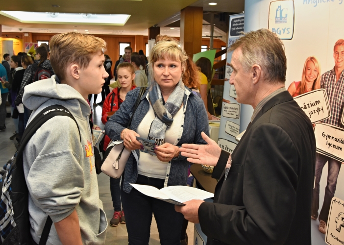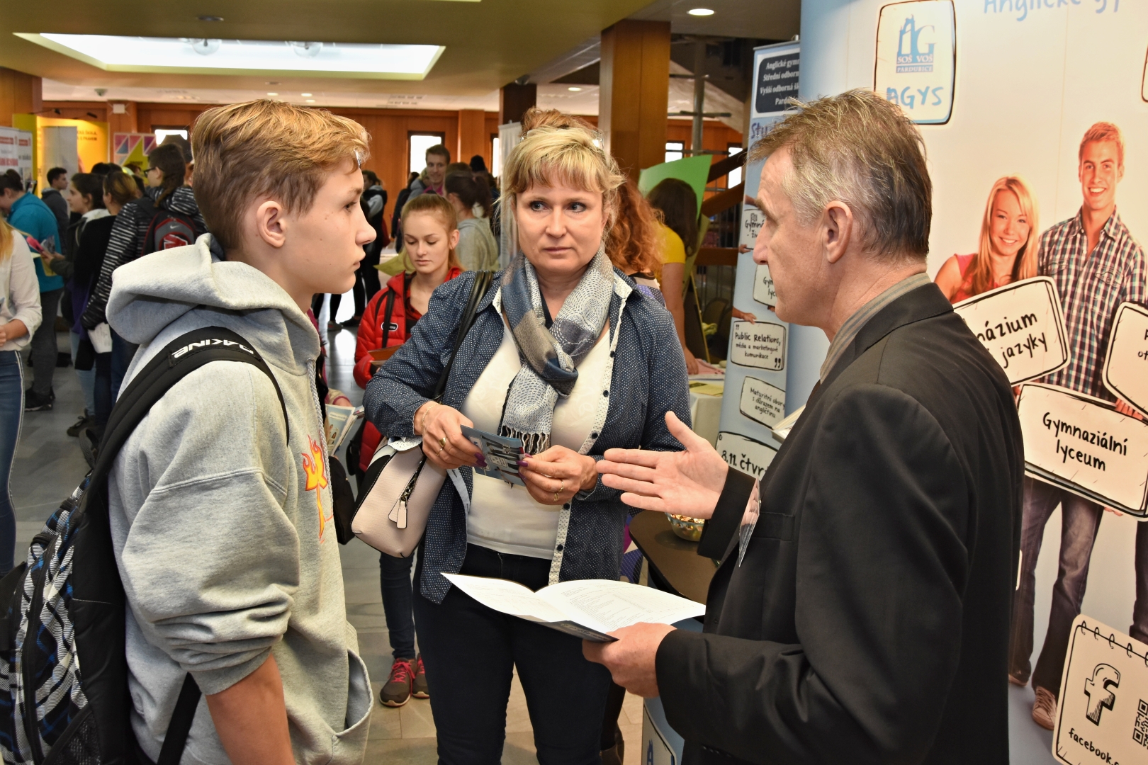 „Mohu nabídnout letáček,“ ozývalo se z každé strany. Žáci základních škol prohlíželi, váhali, nesměle se ptali, či jen tak procházeli velikou nabídku středních škol. U každého stánku na ně čekal vždy alespoň jeden zástupce školy či firmy, který ochotně odpovídal na dotazy.