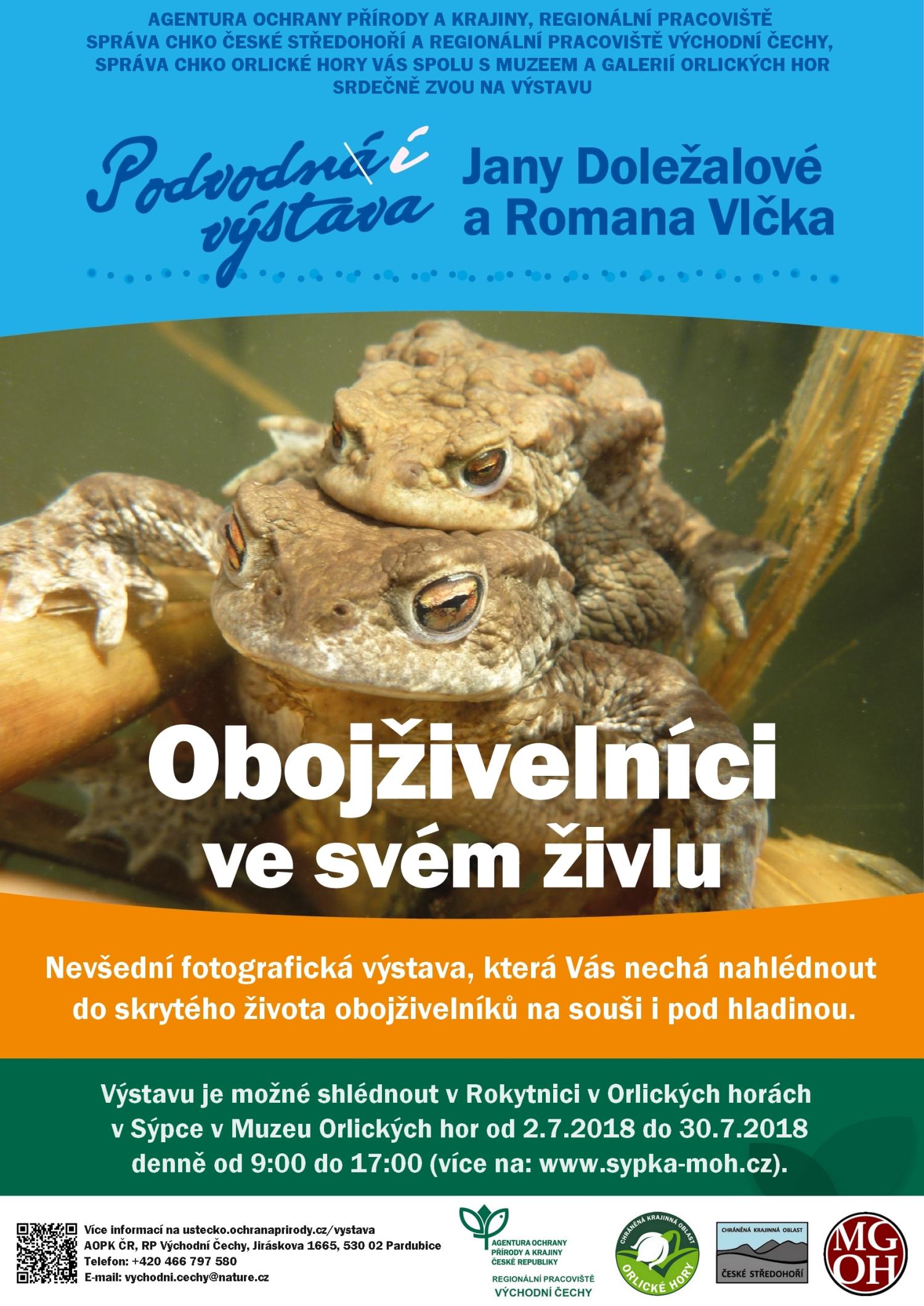 Putovní výstava SCHKO České středohoří a fotografů Romana Vlčka a Jany Doležalové představí obojživelníky v jejich různých vývojových stádiích včetně vodních vajíček a larev. Přiblíží také zajímavý průběh jejich života, během kterého střídají vodní a suchozemské prostředí. Výstava je k vidění v prostorách Sýpky od 2. do 30. 7. 2018 denně, vždy od 9 do 17 hodin.