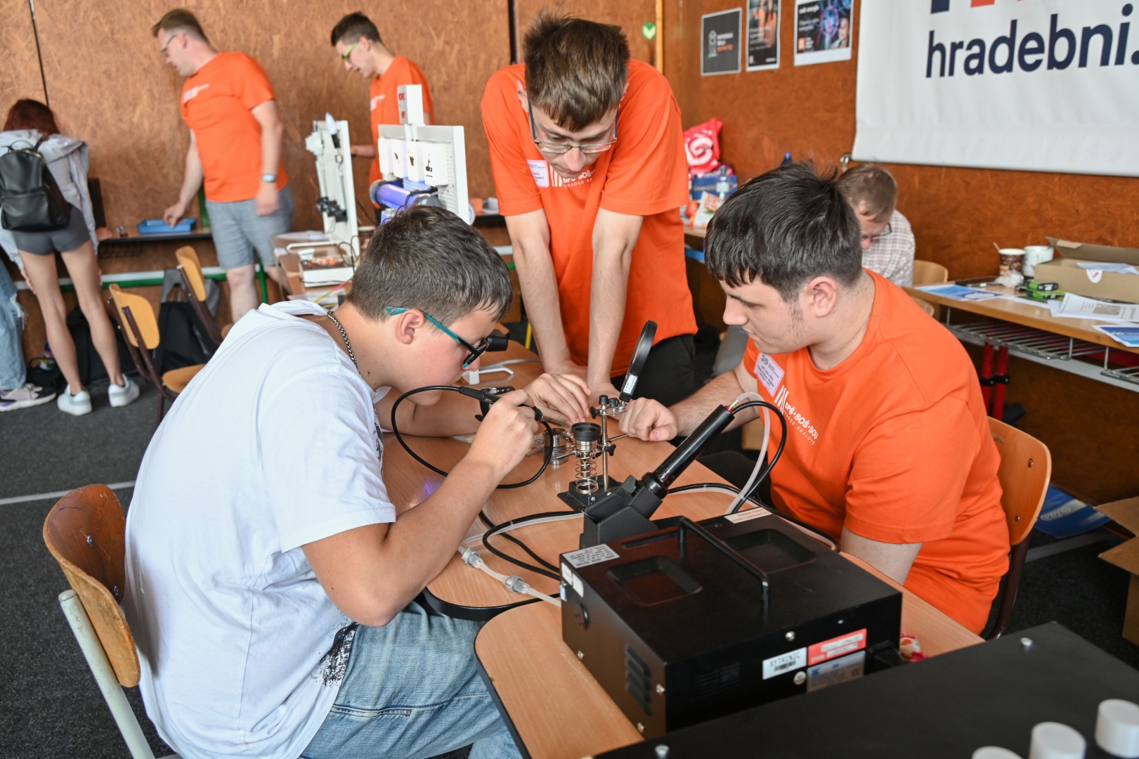 Mladí technici se také mohli zapojit do dvou praktických soutěží. Při práci se dřevem dostali dvoučlenné týmy žáků za úkol postavit to nejrafinovanější věž. Při závěrečném hodnocení pak rozhodovala nejen nápaditost, ale také celkové provedení a kvalita odvedené práce. Z vítězství se nakonec radovali žáci ZŠ Sion J. A. Komenského z Hradec Králové, na druhém místě skončili mladí truhláři ze ZŠ Bodláka a Pampelišky, Robousy a pomyslný bronz putoval do Předměřic nad Labem.