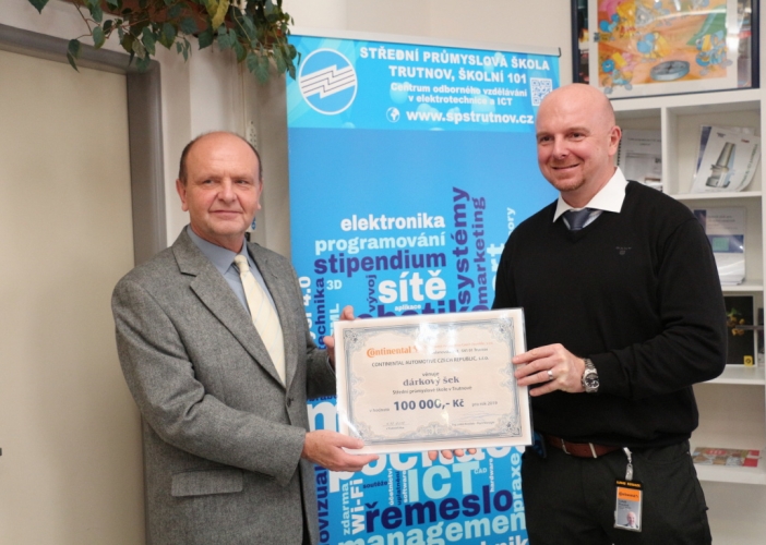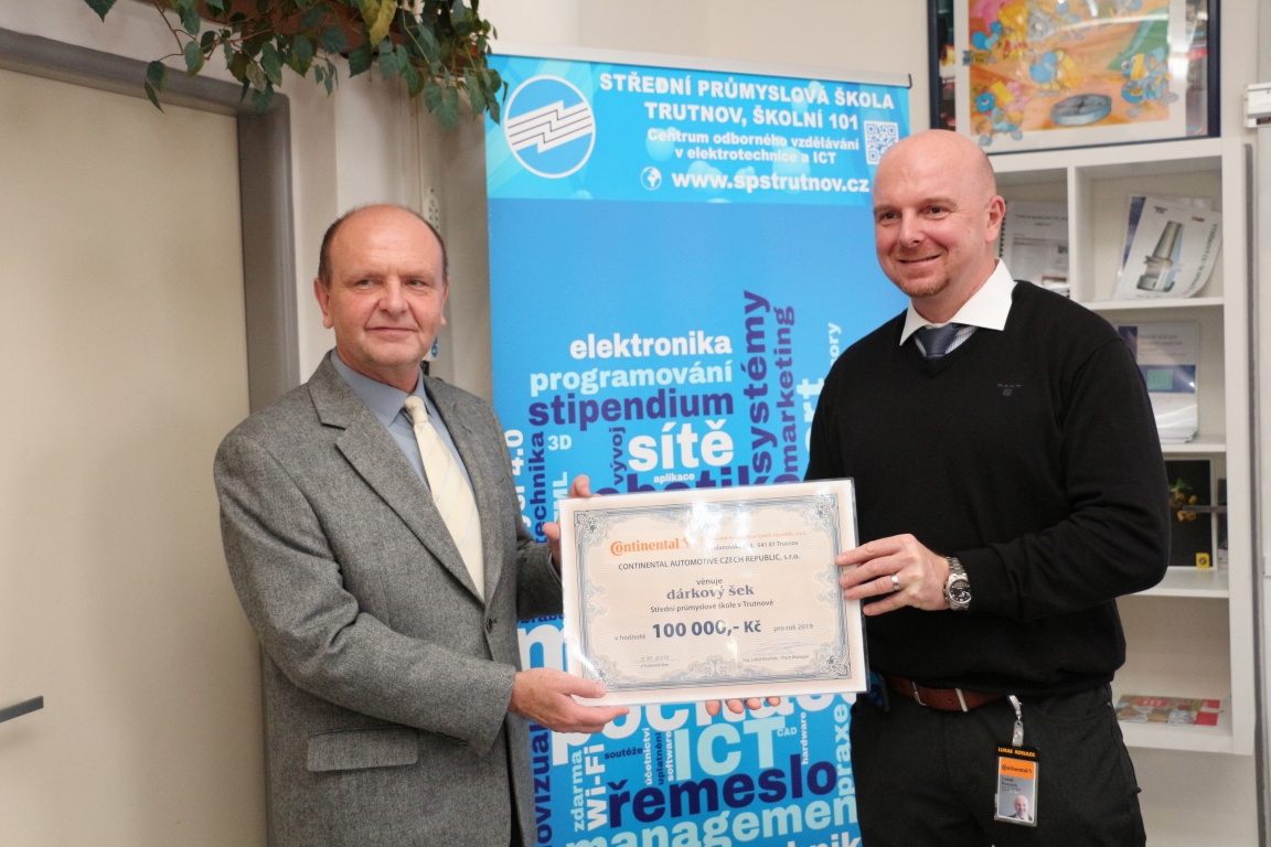 Součástí slavnostního uvedení trenažeru do provozu bylo také předání stotisícového daru od společnosti Continental, u níž dosud našlo uplatnění okolo tří stovek absolventů SPŠ Trutnov. Společnost Continental Automotive Czech republic, s. r. o., je s více než 1800 zaměstnanci nejvýznamnějším zaměstnavatelem v Trutnově. Umožňuje studentům absolvovat odborný výcvik nebo výrobní praxi, prázdninové brigády, exkurze a finančně podporuje vybavení odborných učeben.