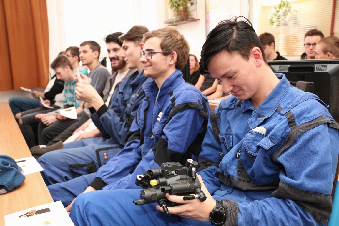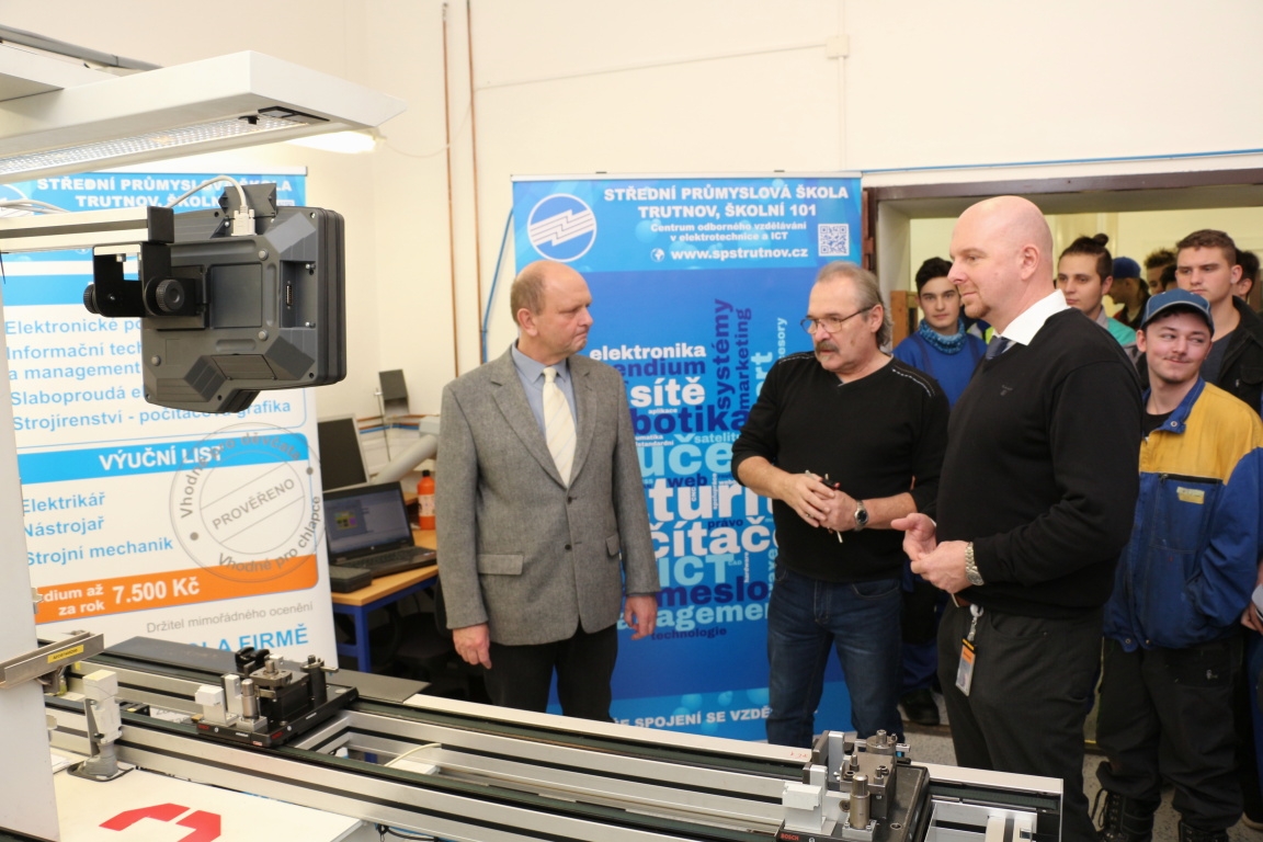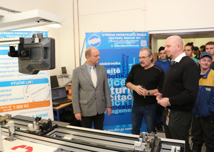 „Z iniciativy kolegů Františka Kloučka a Martina Fišera vznikl nápad na zřízení trenažéru výrobní linky pro výuku našich žáků. Během dvou měsíců jsme ve škole vytvořili reálné prostředí průmyslového provozu. Nyní učitelé s žáky pracují na propojení trenažeru s robotickými pracovišti,“ popisuje ředitel školy Vladislav Sauer.